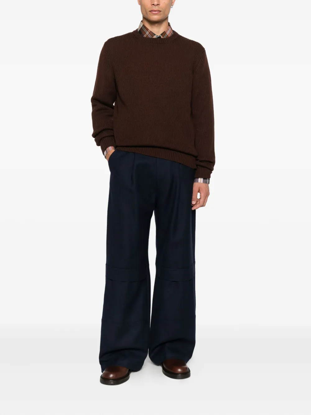 Джемпер в рубчик с круглым вырезом Seven Gauge, коричневый