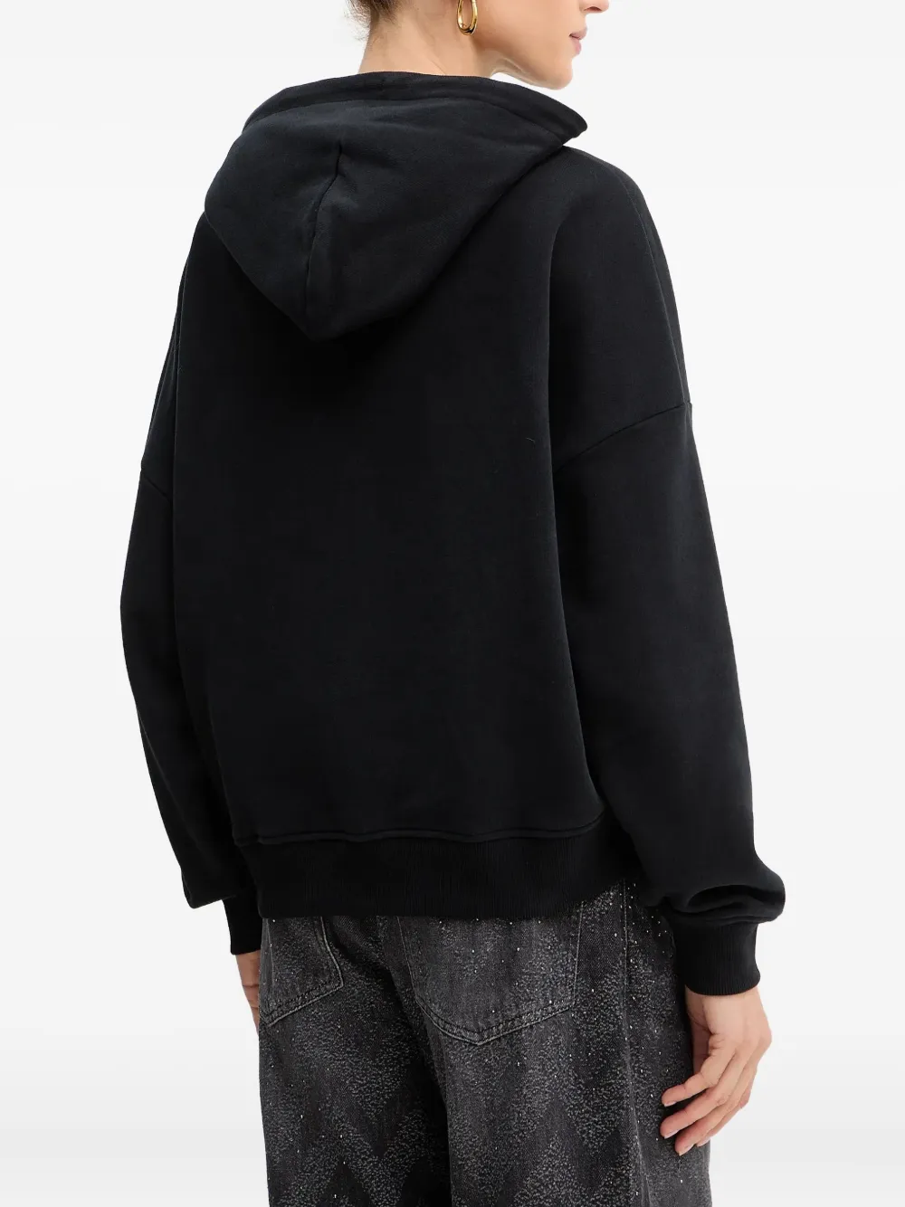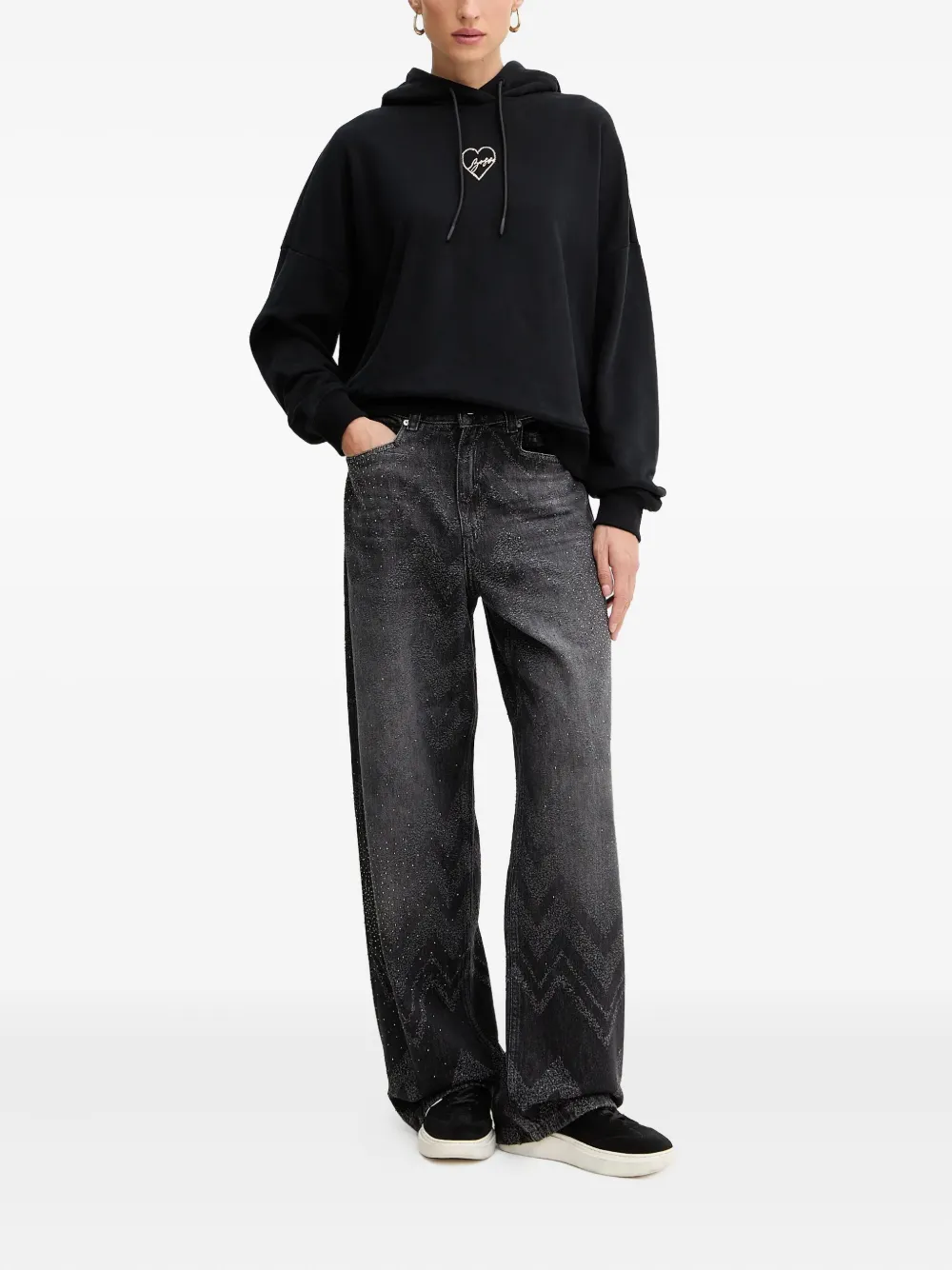 черное худи с графическим изображением сердца, на кулиске, с длинными рукавами и ребристыми манжетами