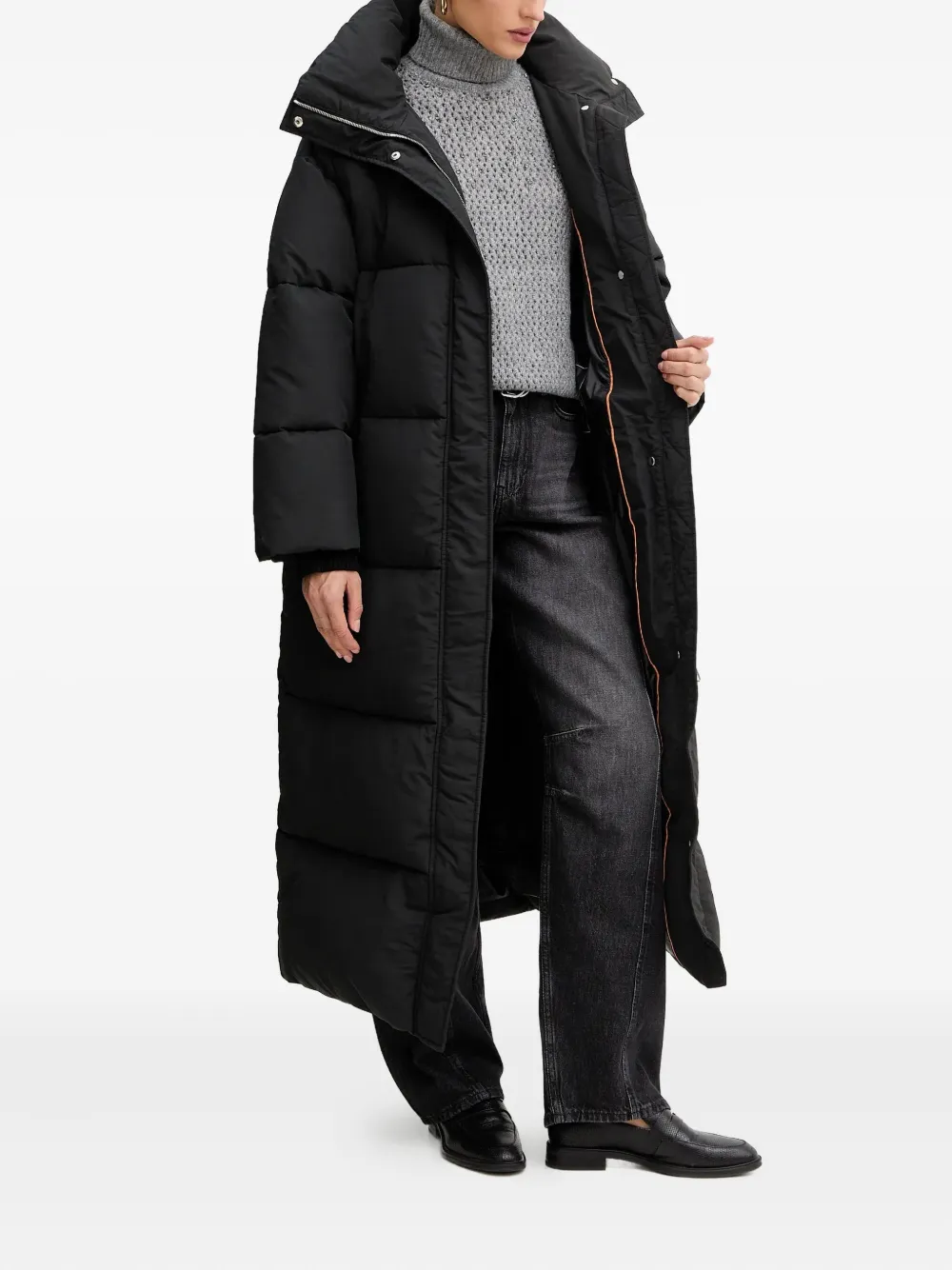 Стеганое пальто со стойкой Boss, черный