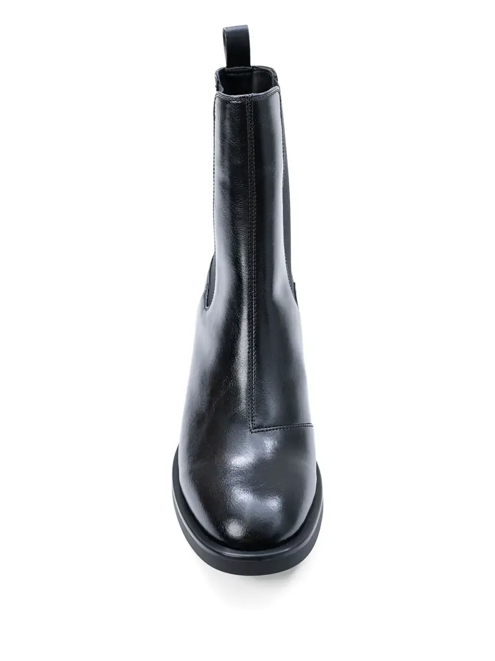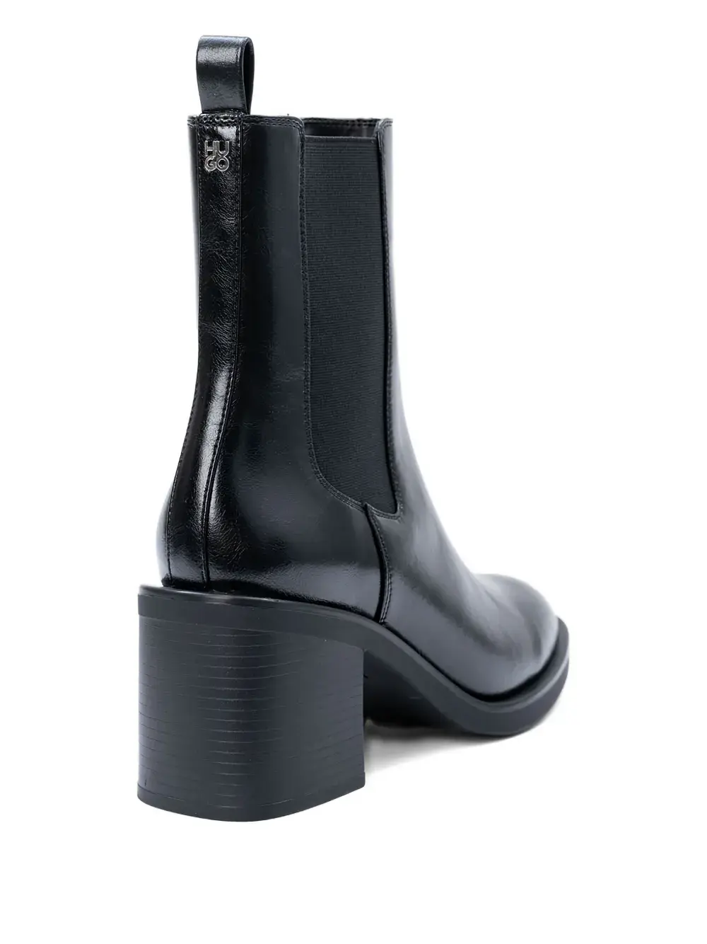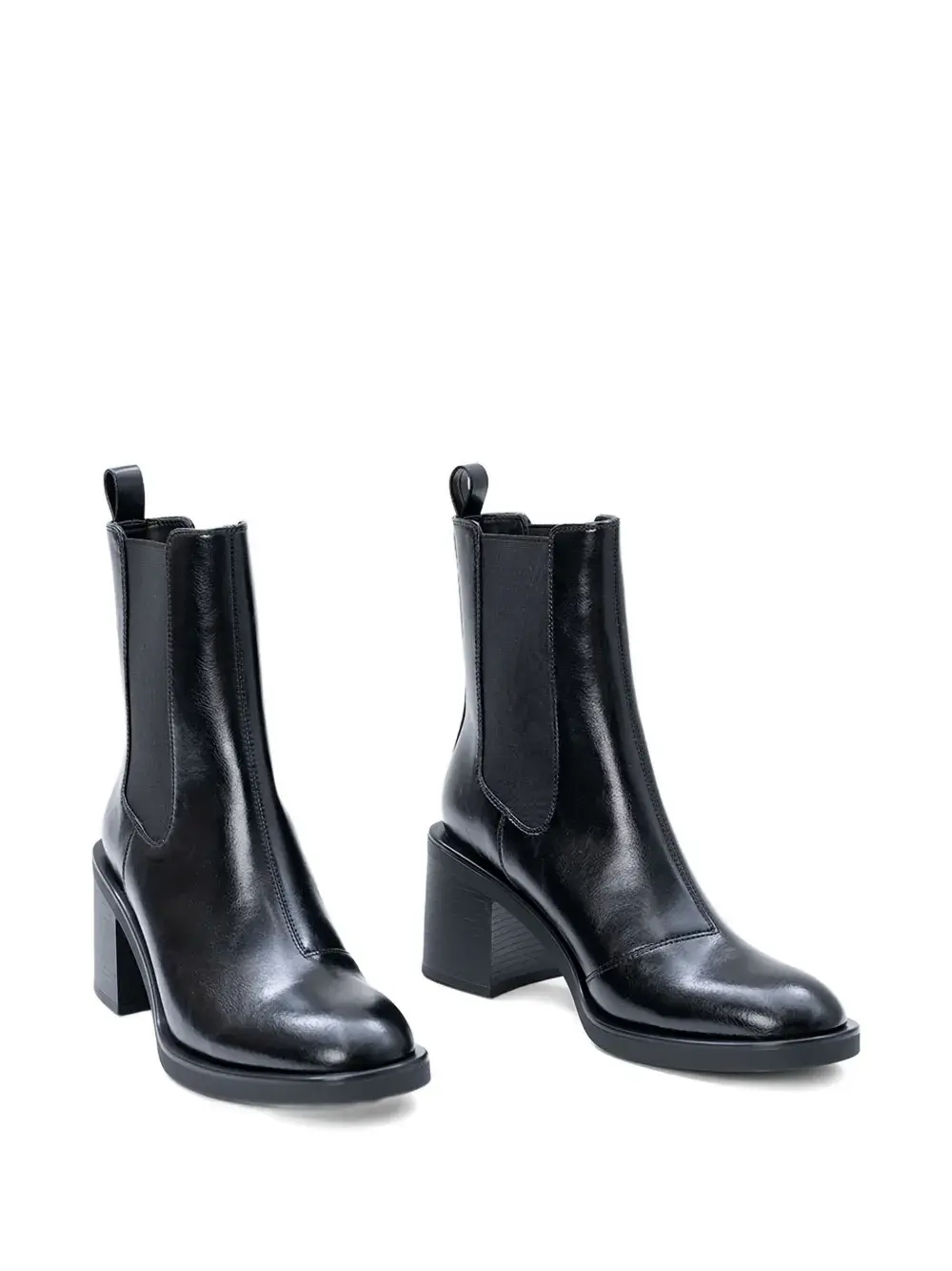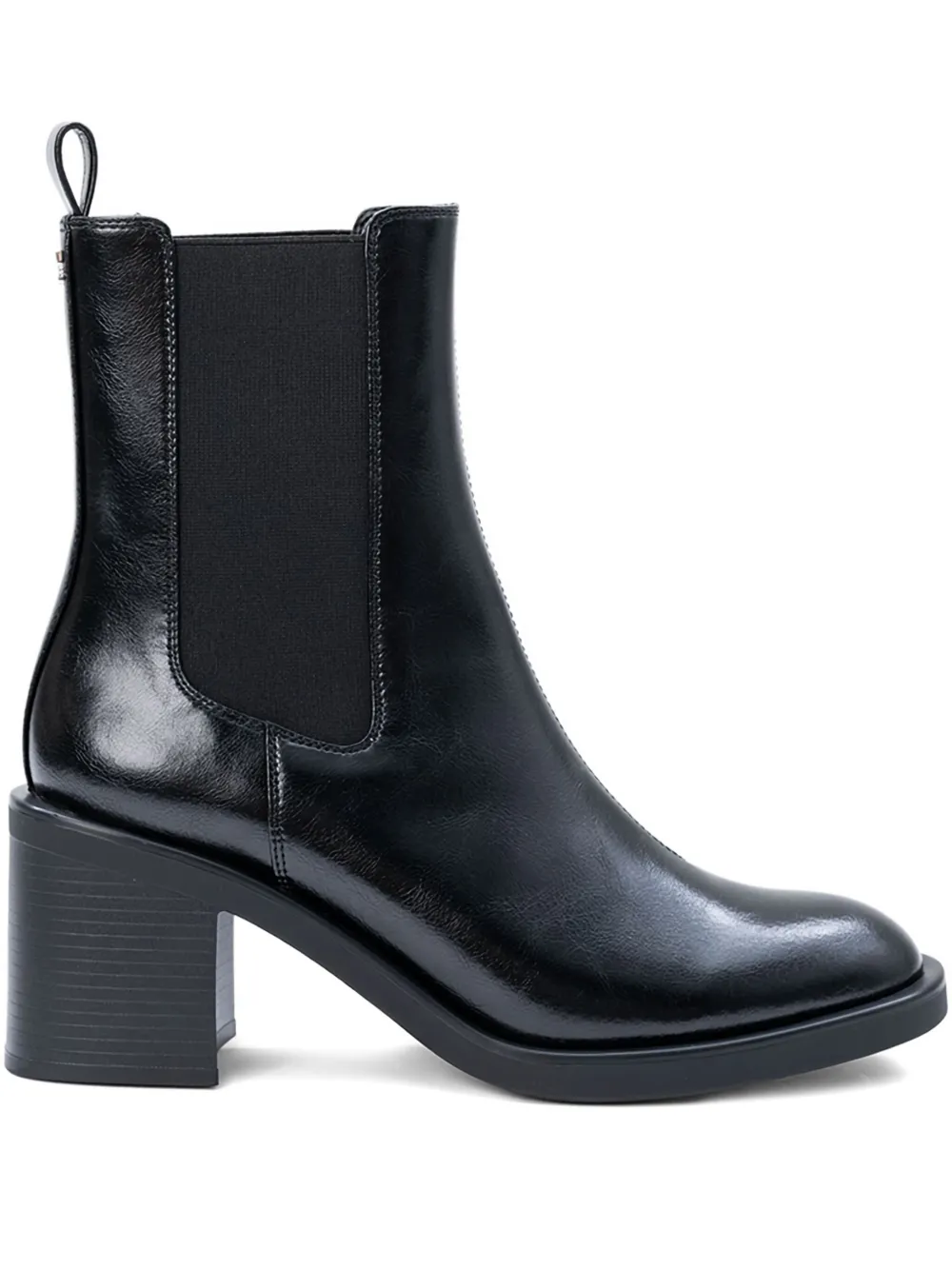 чёрные ботинки на массивном каблуке, с задней петлей, эластичными боковыми вставками, рифлёным каблуком и округлым носком