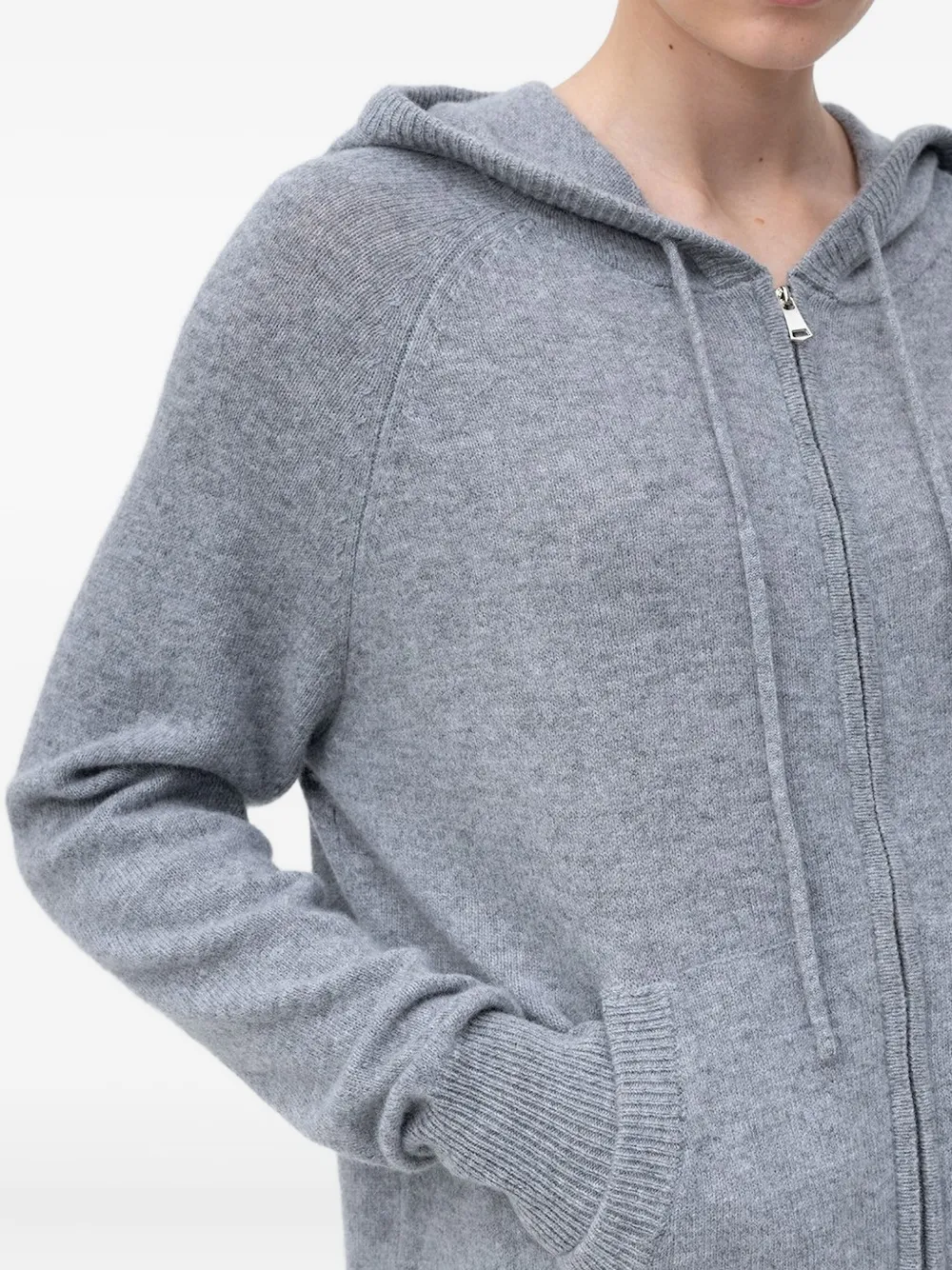 серая мешковатая толстовка с капюшоном, длинными рукавами и ребристым подолом