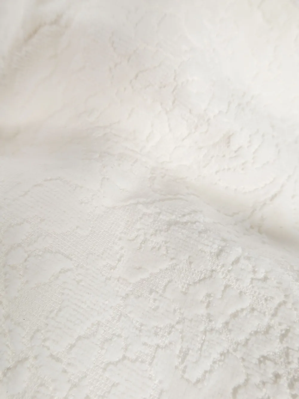 белый цвет, тиснёные детали, цветочный узор, текстурированная отделка, логотип, отделка по краю
