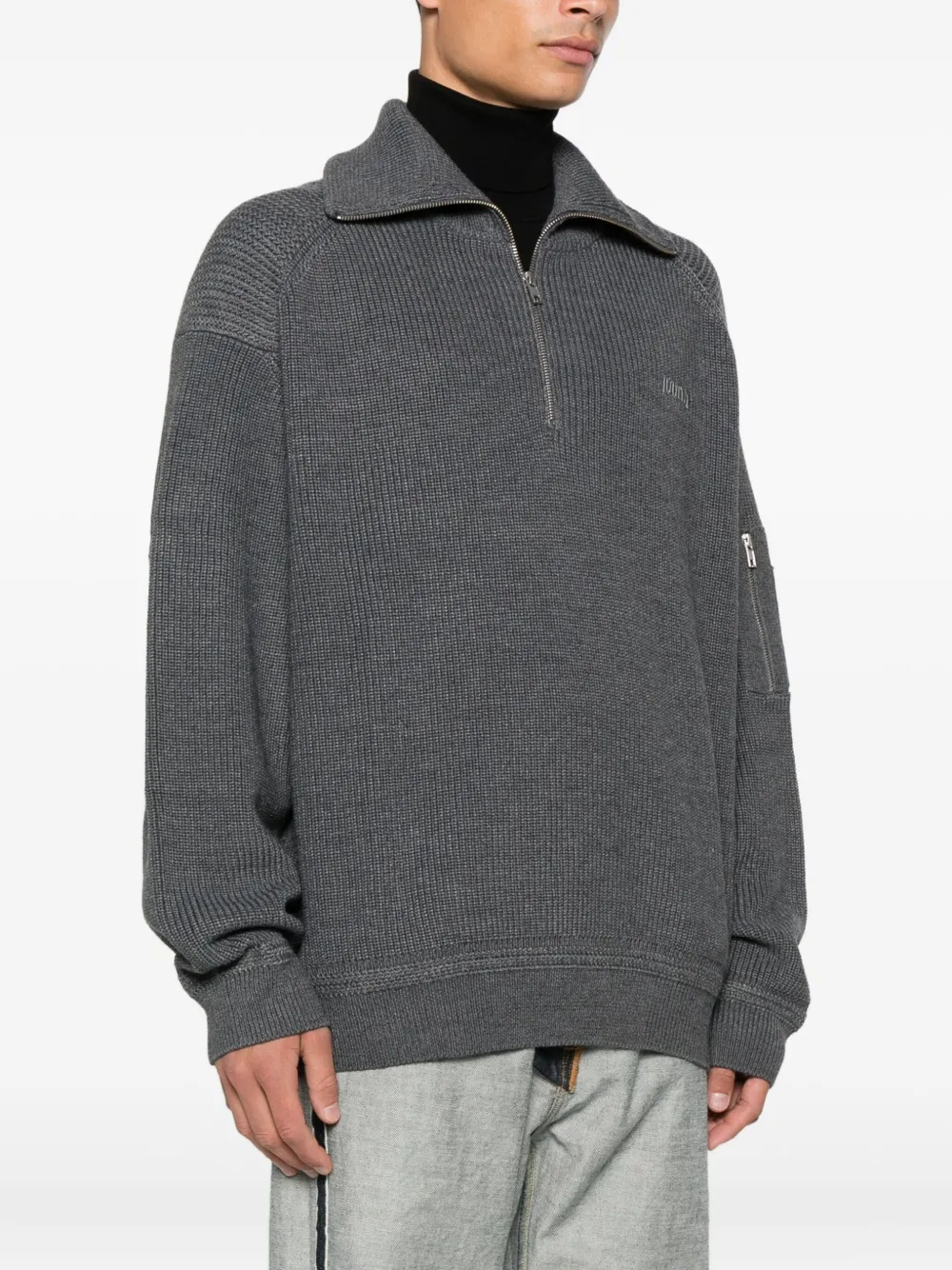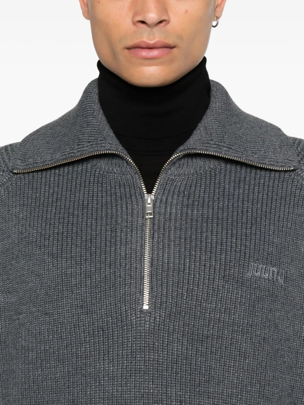 Свитер в рубчик с воротником на молнии Juun.J, серый