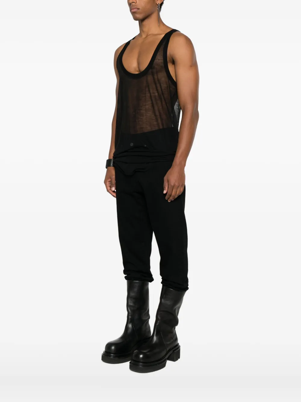 черная майка без рукавов с круглым вырезом и закругленным подолом
