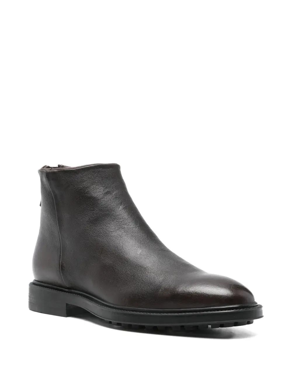 коричневая кожаная обувь с застёжкой-молнией, круглым носком и плоской подошвой