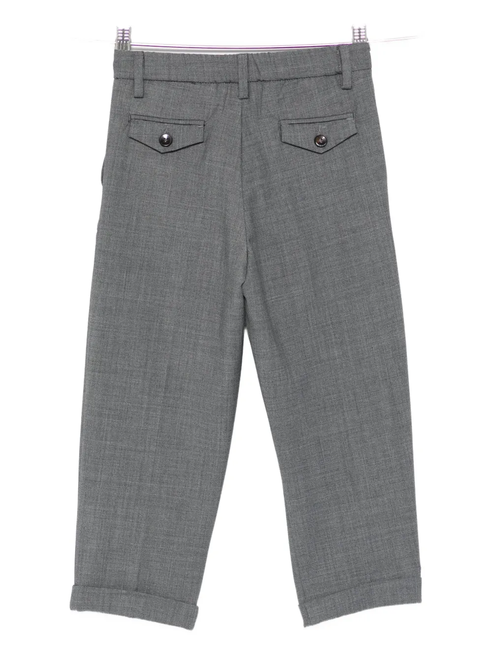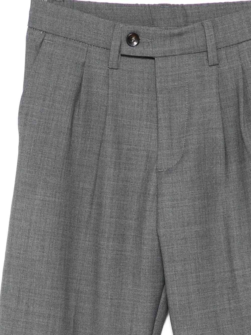 серый цвет, эластичный пояс на талии, застежка на пуговицу спереди, два боковых кармана