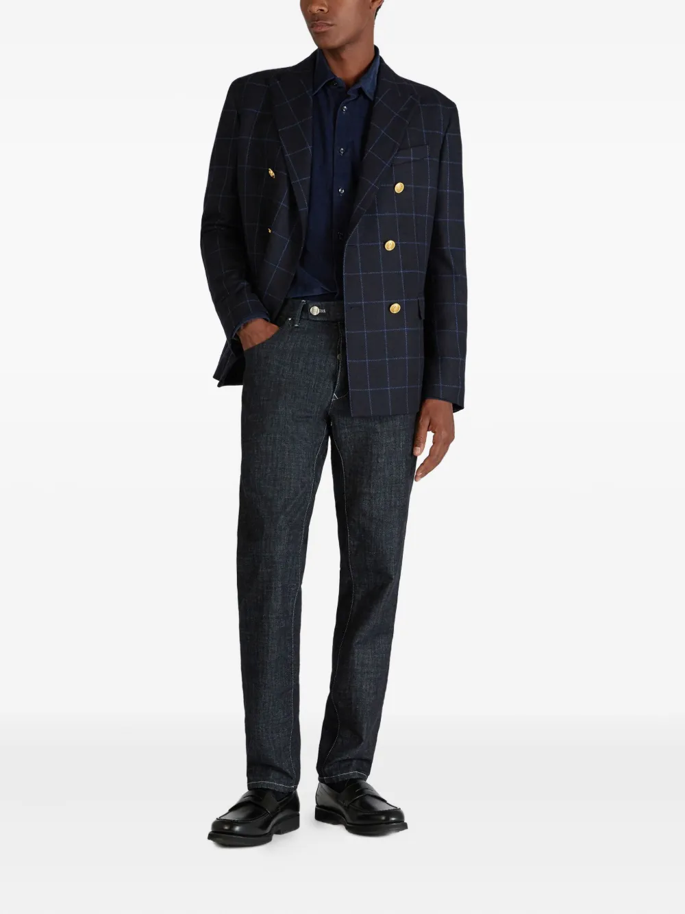 Двубортный пиджак в клетку Incotex, синий