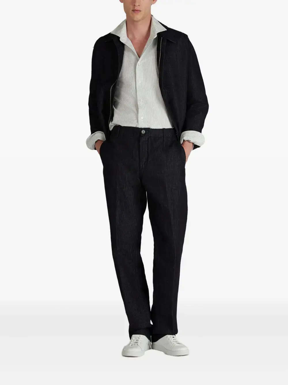 светло-голубая рубашка в полоску на пуговицах с длинными рукавами и манжетами на пуговицах