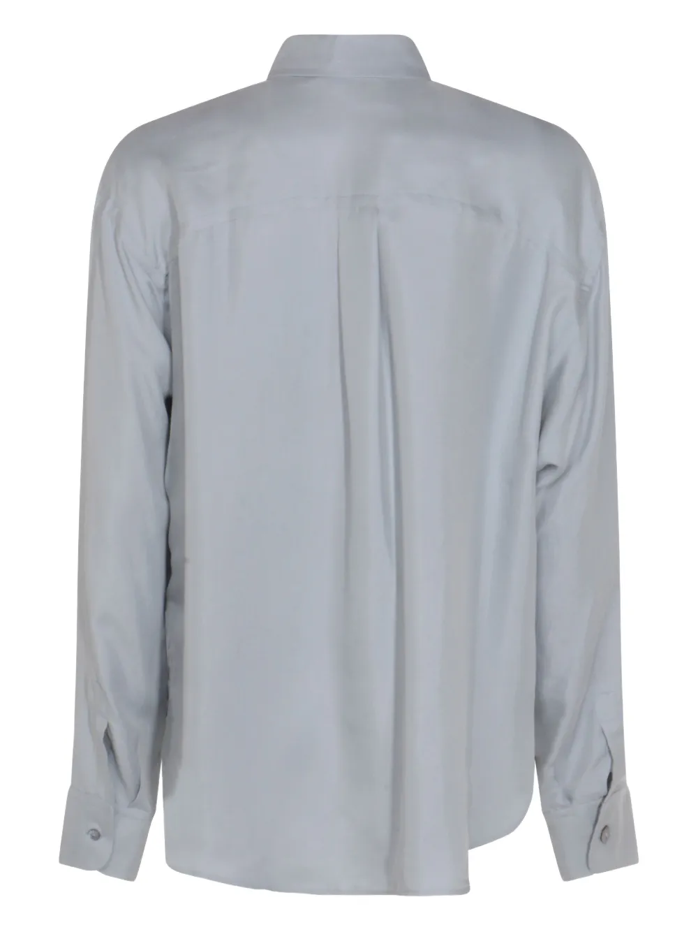 серый цвет, застёжка на пуговицах, длинные рукава, манжеты на пуговицах, заострённый воротник