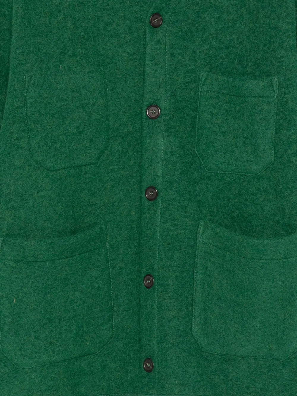 зелёный V-образный вырез, застёжка на пуговицы спереди, контрастные пуговицы, три передних кармана