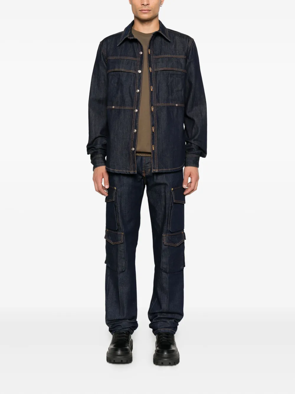 Джинсовая рубашка с контрастной прострочкой Yes London, синий