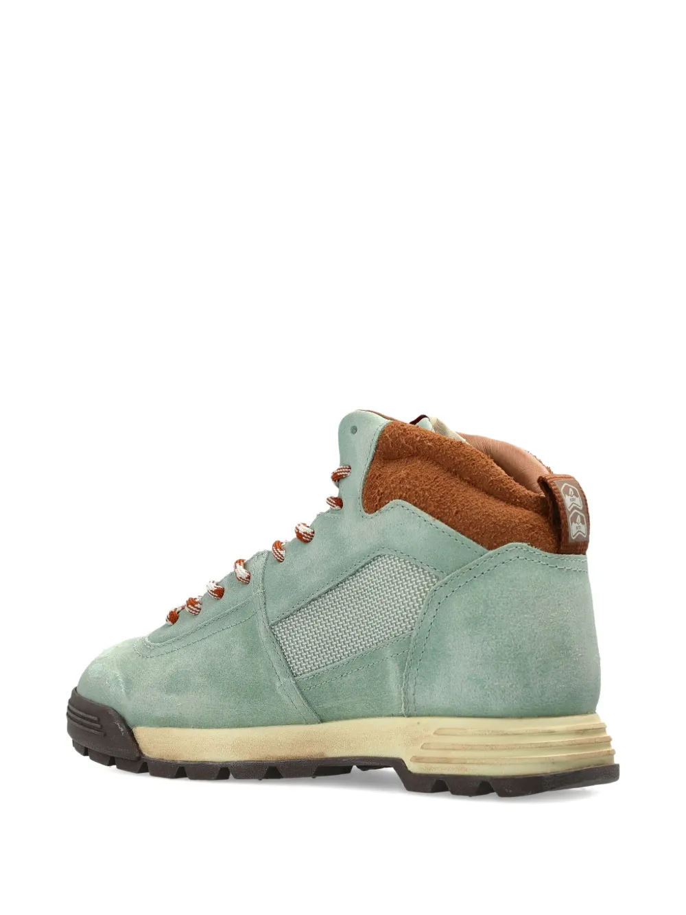 светло-зелёные высокие ботинки с вставками, шнуровкой, тракторной подошвой и мягким воротником