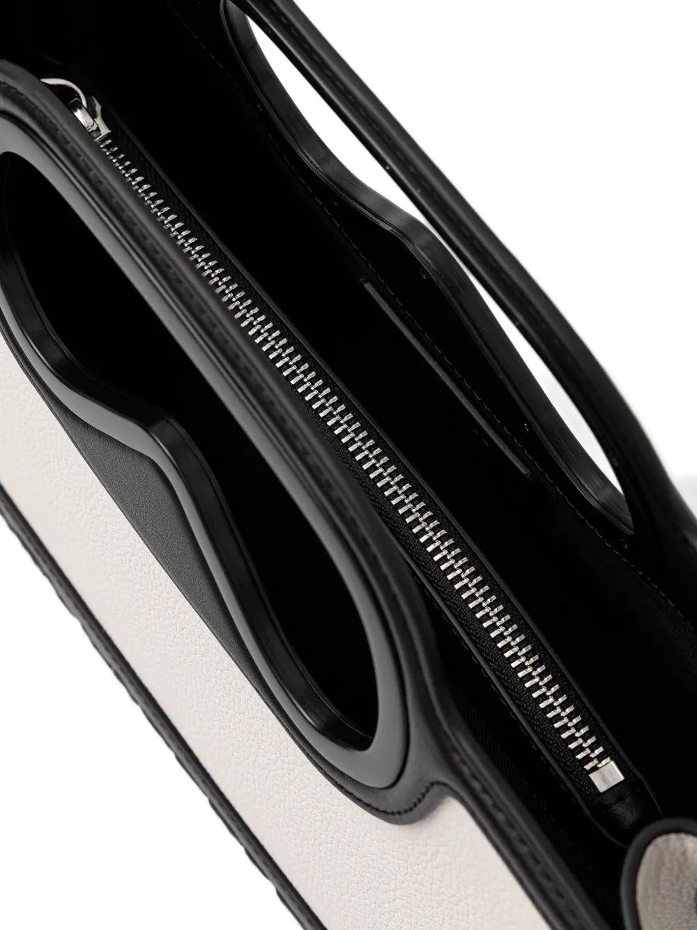 белая сумка с верхней ручкой, съемным плечевым ремнем, тисненым логотипом, застежкой-молнией, фурнитурой цвета серебра