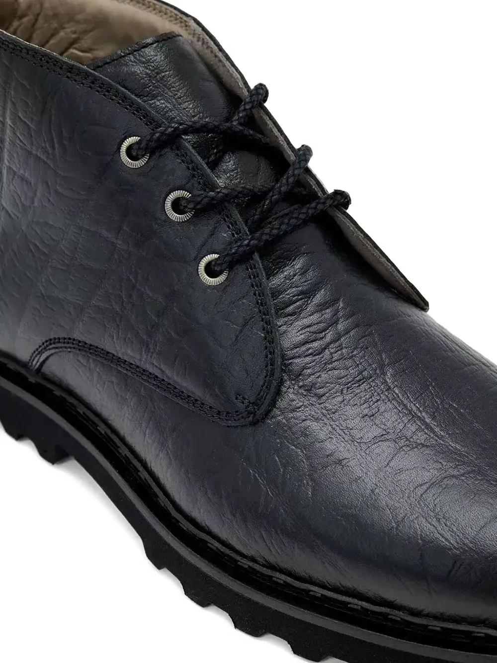 верх из черной телячьей кожи, задняя петля для удобства надевания, шнуровка, декоративная вставка, рифленая подошва