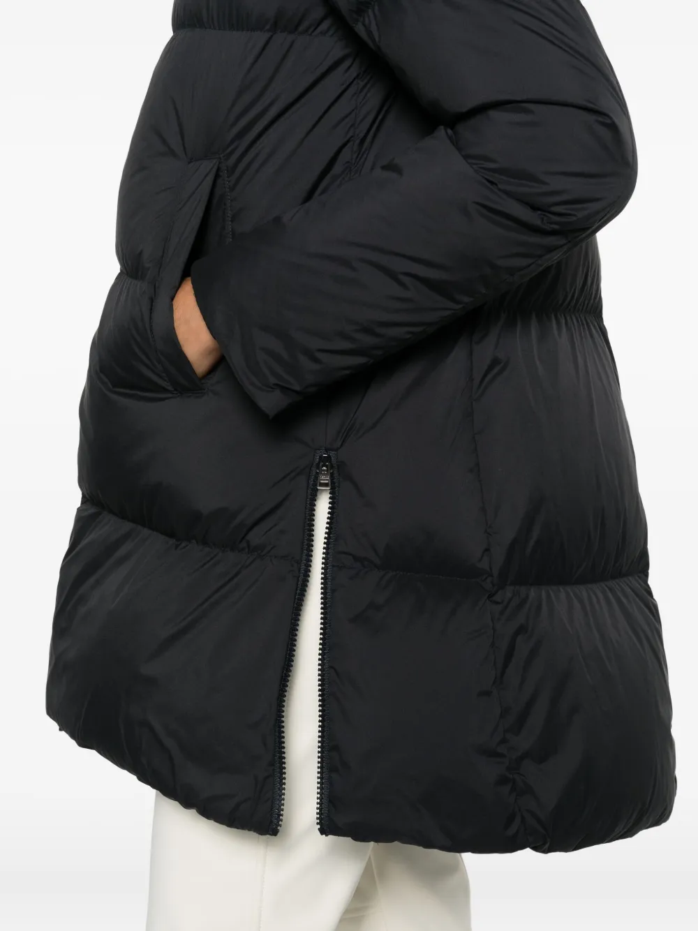 темно-синий стеганый с длинными рукавами, воротником-воронкой и застежкой на молнию