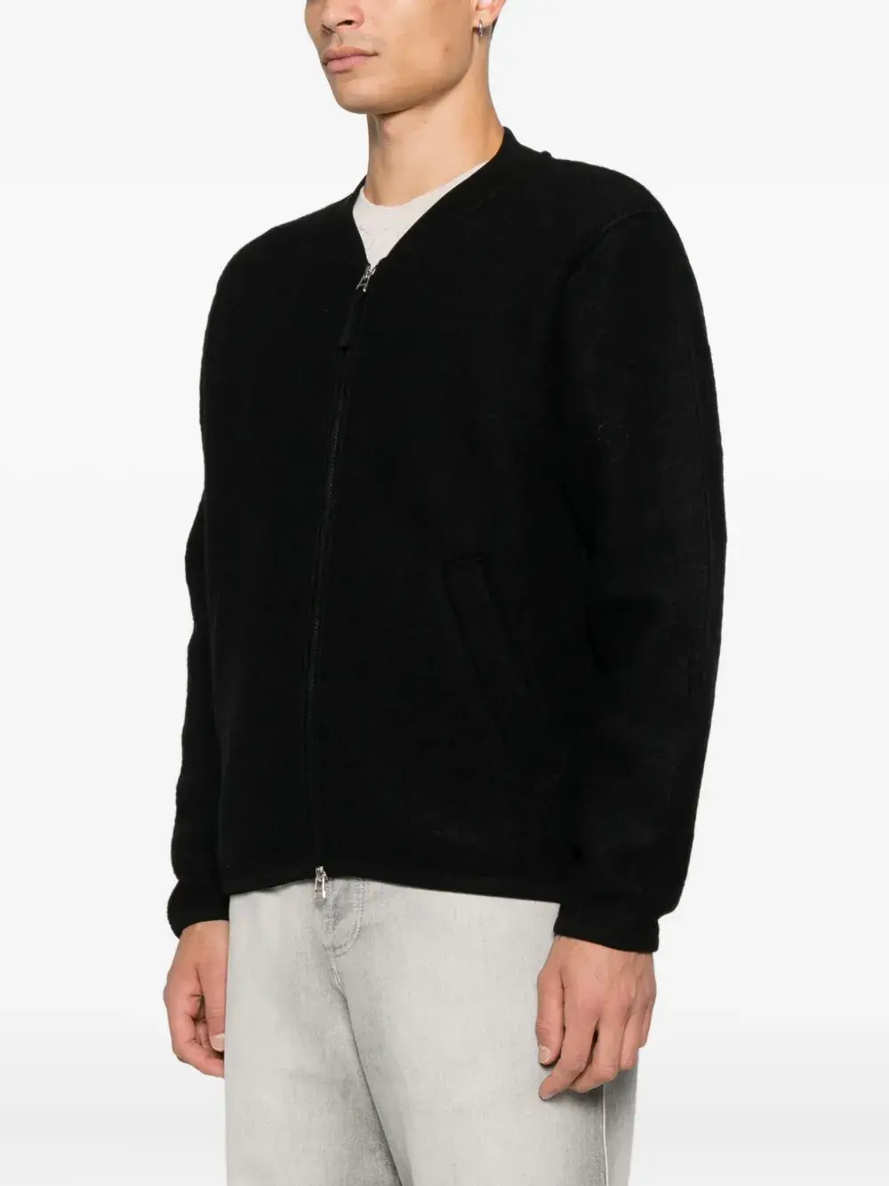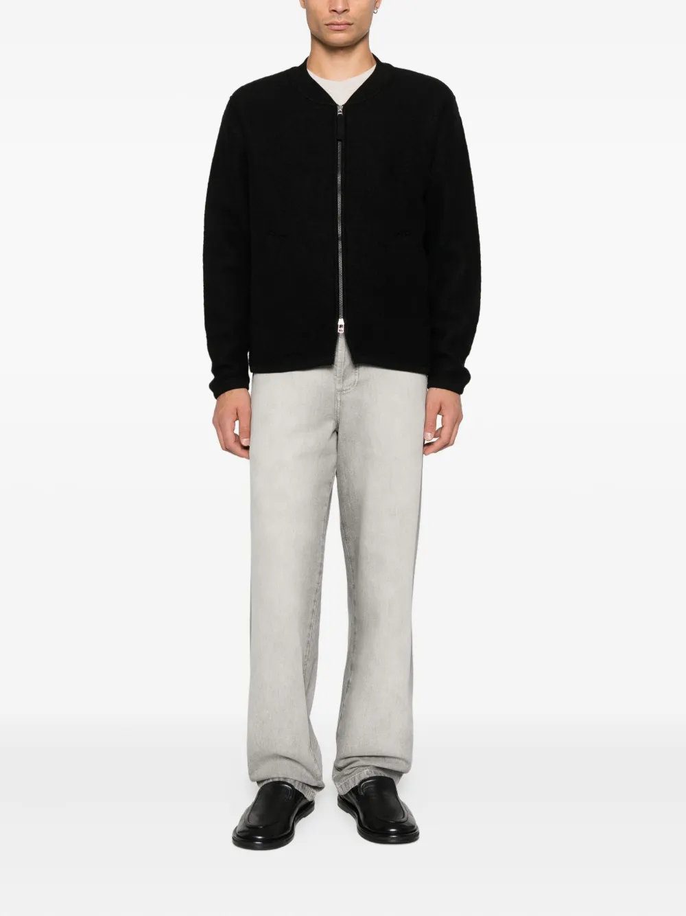 чёрная куртка на молнии с прорезными карманами и длинными рукавами