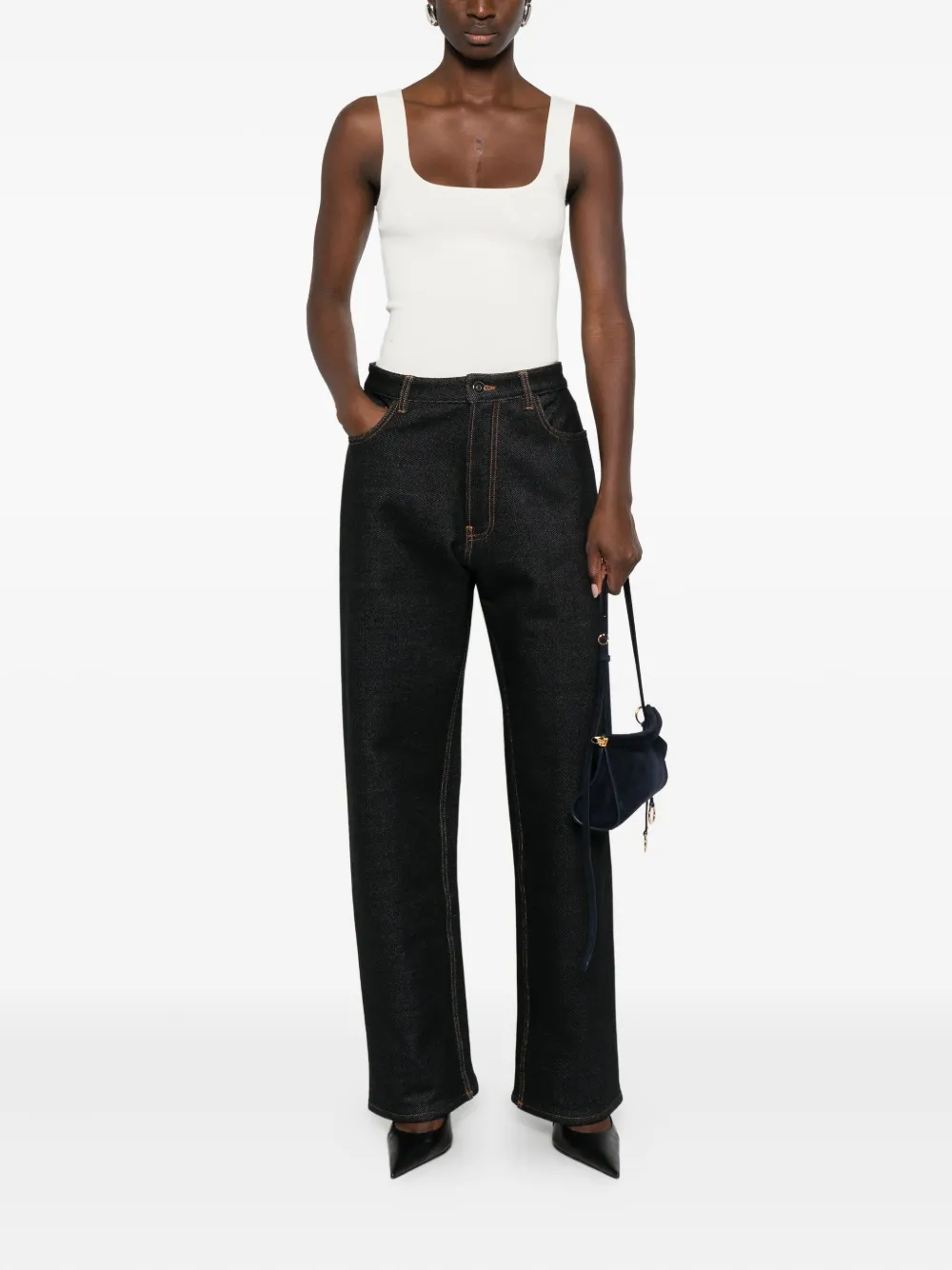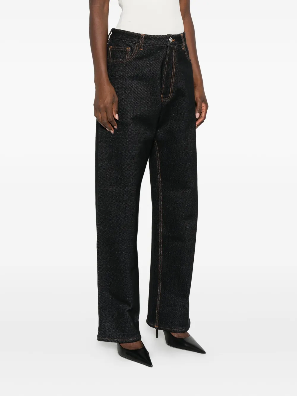 Джинсы с контрастной строчкой Alaïa, черный