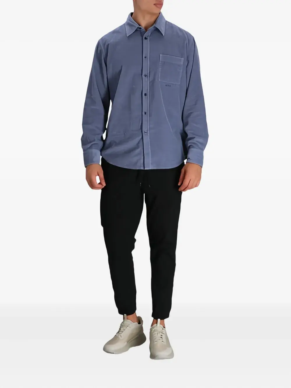 синяя вельветовая фактура, нагрудный карман, застёжка на пуговицы, длинные рукава, манжеты на пуговицах