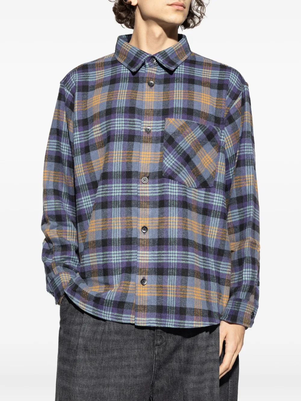 многоцветная рубашка в клетку с нагрудным карманом, застежкой на пуговицы, длинными рукавами и манжетами на пуговицах