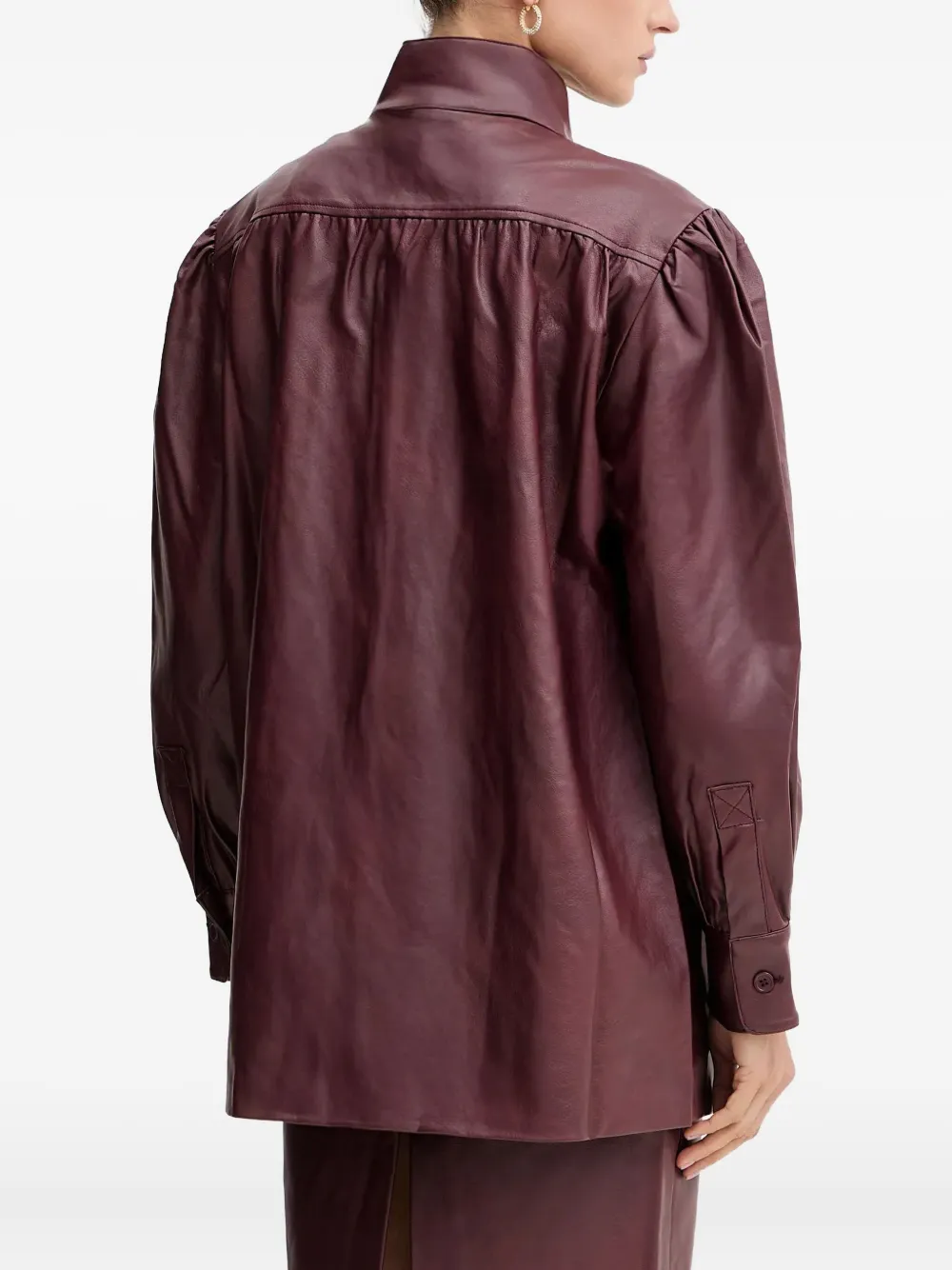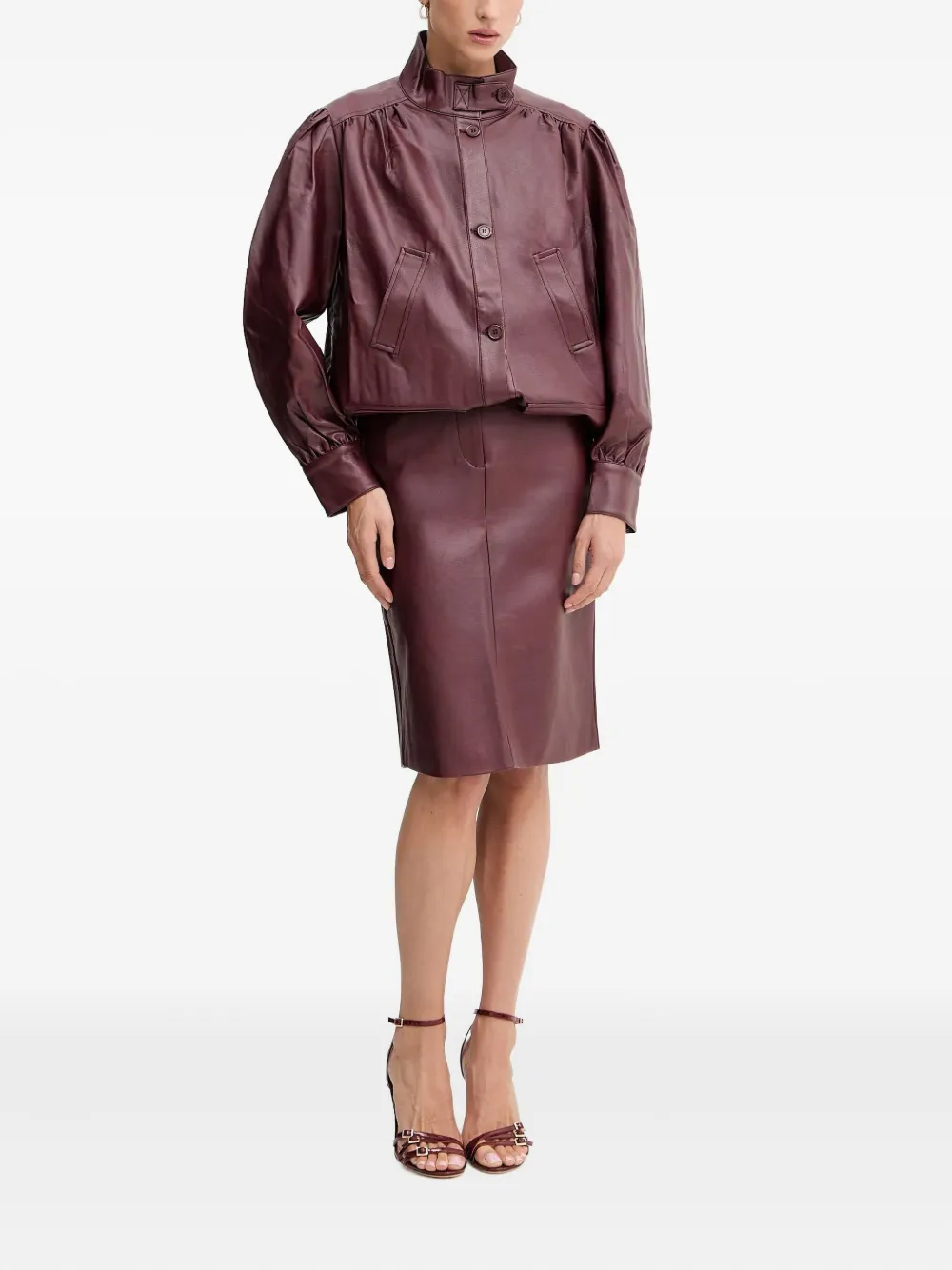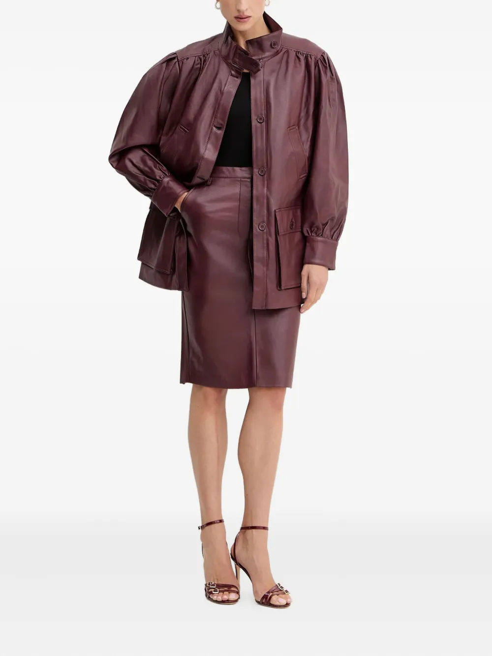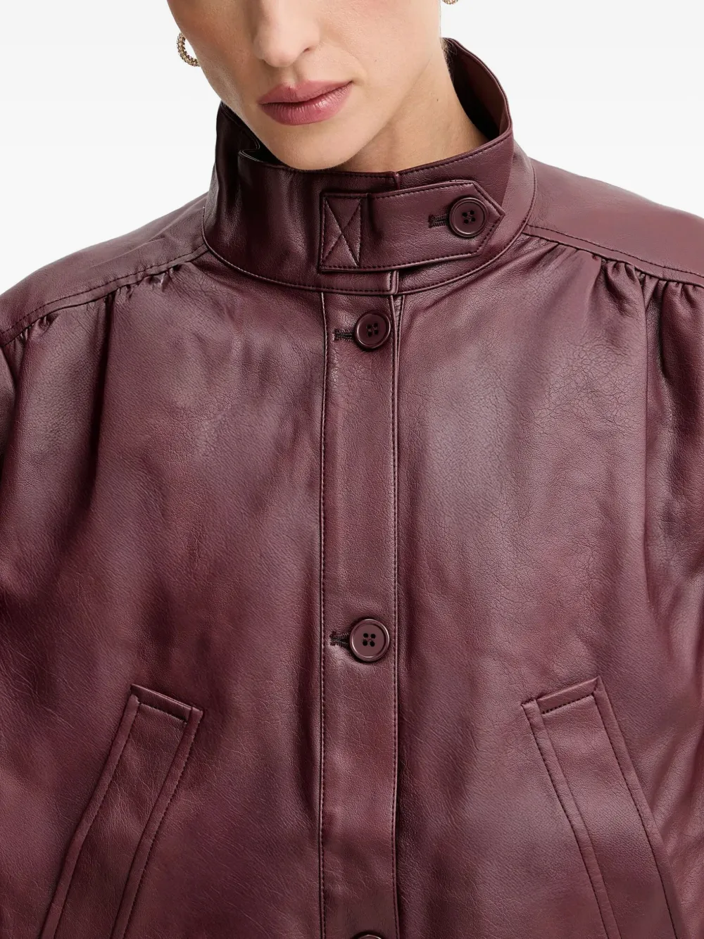 бордовый высокий воротник, застежка на пуговицы, длинные рукава, накладные карманы