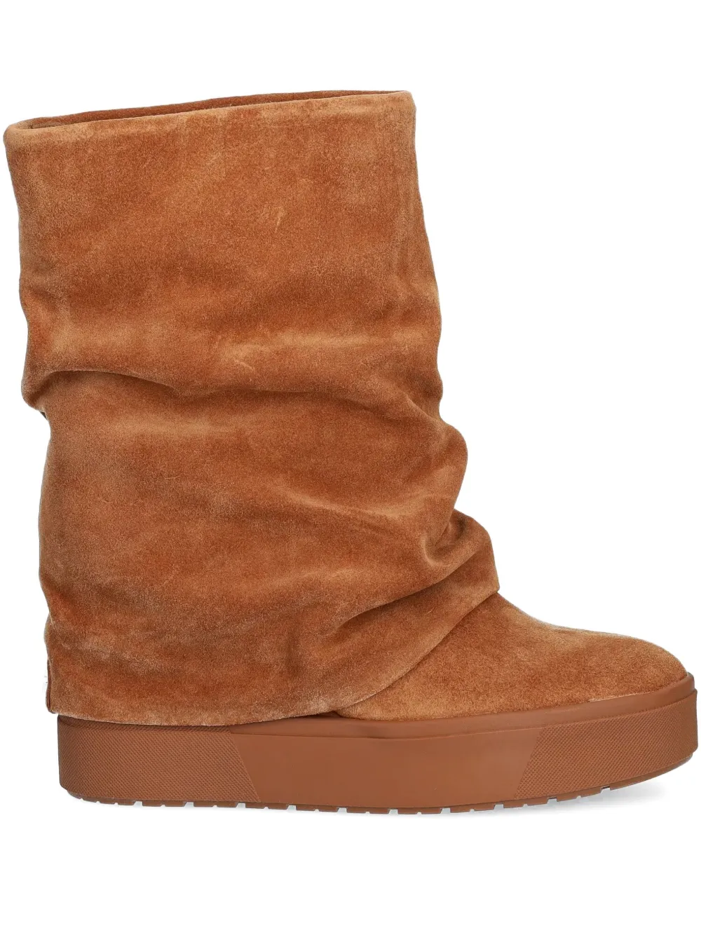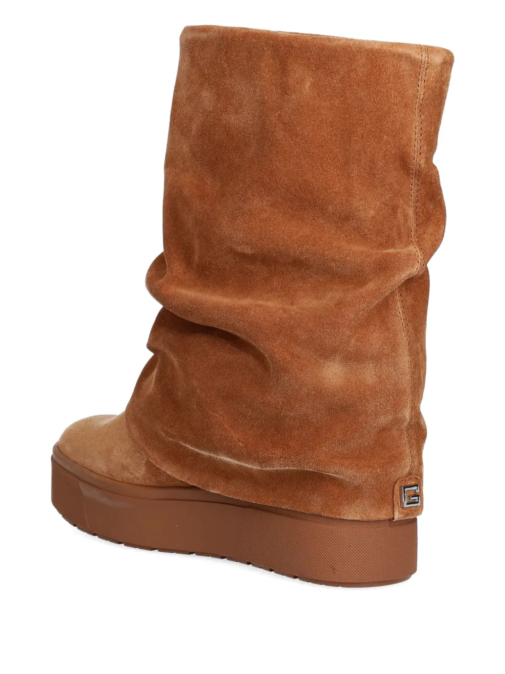 светло-коричневая платформа, присборенные детали, круглый носок, логотип, рифлёная подошва