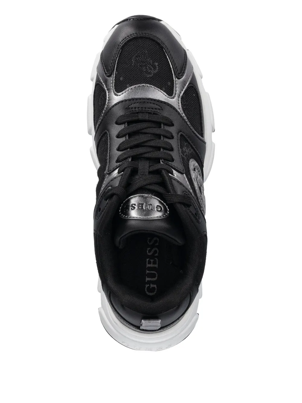 черная аппликация с логотипом, шнуровка, петля на пятке, многослойный дизайн, массивная подошва
