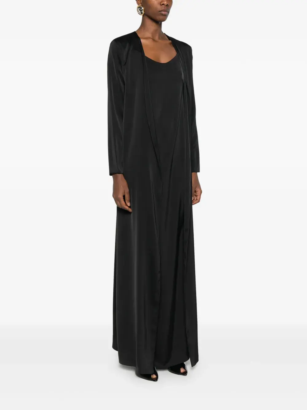 черный кардиган с длинными рукавами и открытой передней частью