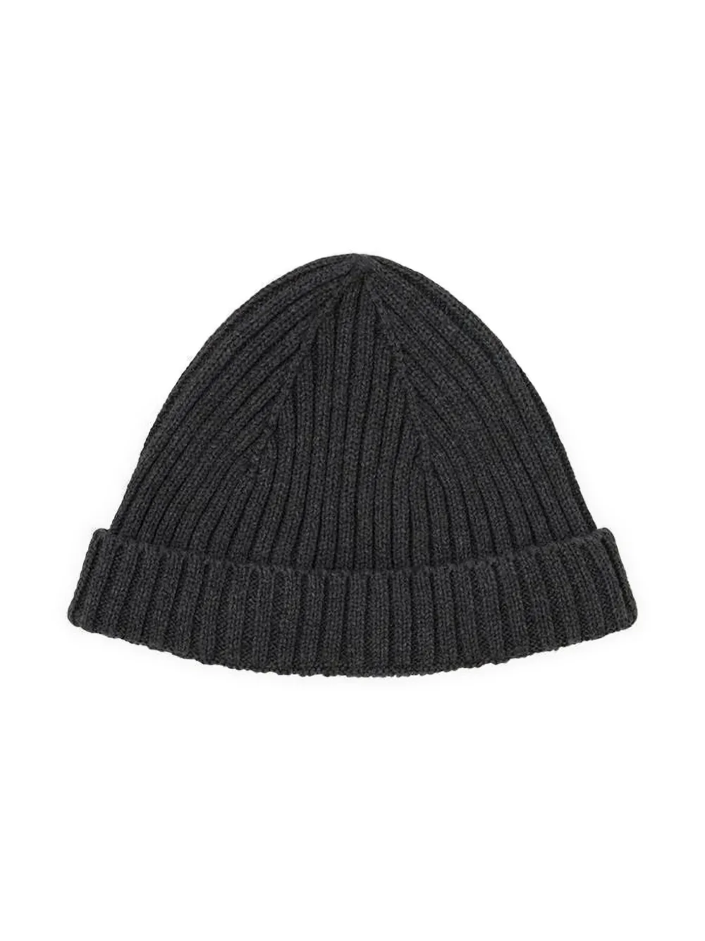 тёмно-серая хлопковая вязаная шапка с отворотом