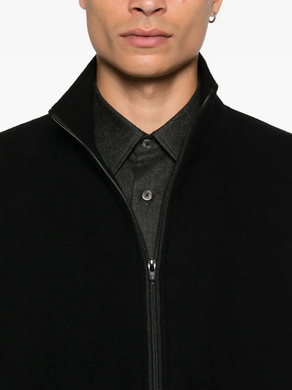 черная двухсторонняя застежка-молния спереди, высокий воротник, длинные рукава