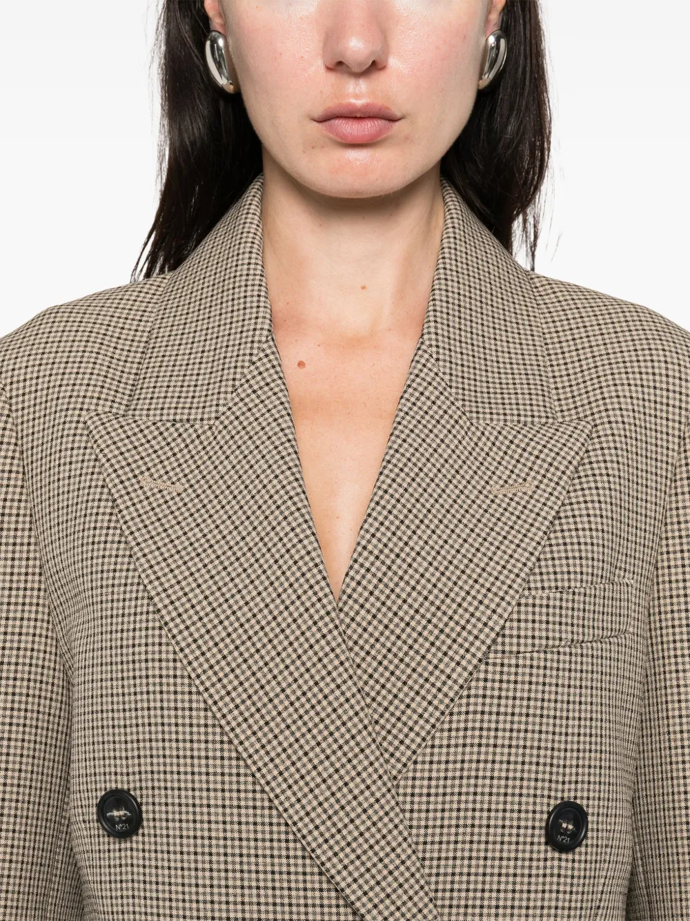 Двубортный пиджак в клетку Nº21, коричневый