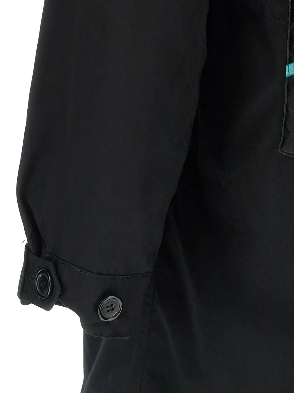 чёрные принты, регулируемый капюшон, высокий воротник, застёжка на кнопки, пояс на шнурке, регулируемые манжеты