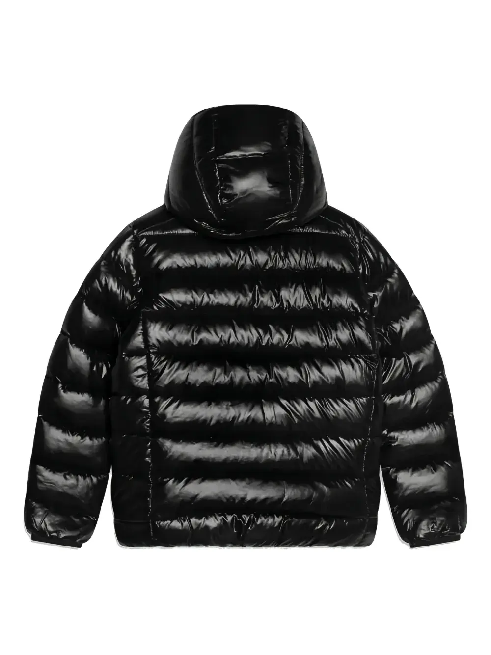 черная куртка с капюшоном, застежкой-молнией, отделкой из искусственного меха, передними карманами и стеганой отделкой