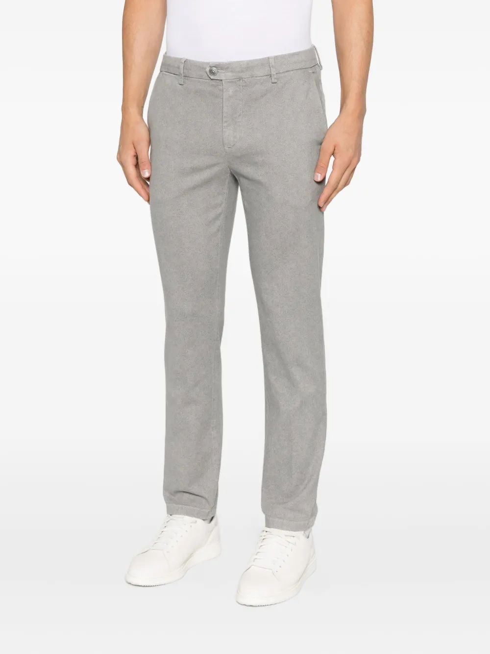 пепельно-серый цвет, смесь хлопка, застёжка на пуговицы, шлёвки для ремня, боковые карманы, задние прорезные карманы