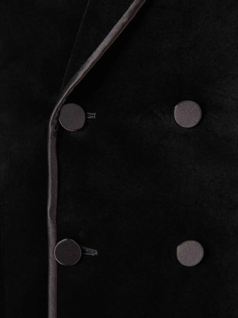 чёрный пиджак с лацканами, застёжкой на пуговицы спереди, манжетами в рубчик, кожаный, двубортный