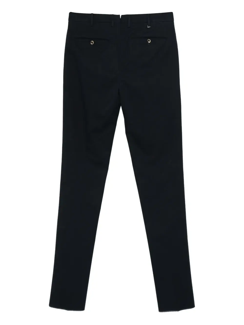 чёрный, застёжка на пуговицу, шлёвки для ремня, защипы спереди, прорезные карманы сзади
