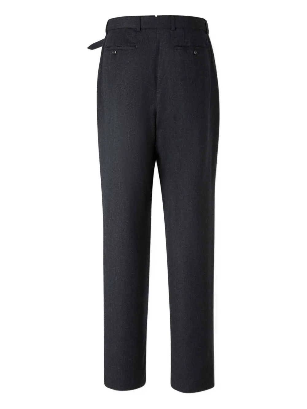 тёмно-серые шлёвки для ремня, задний карман на пуговице, боковые карманы, застёжка-молния, прямой нижний край