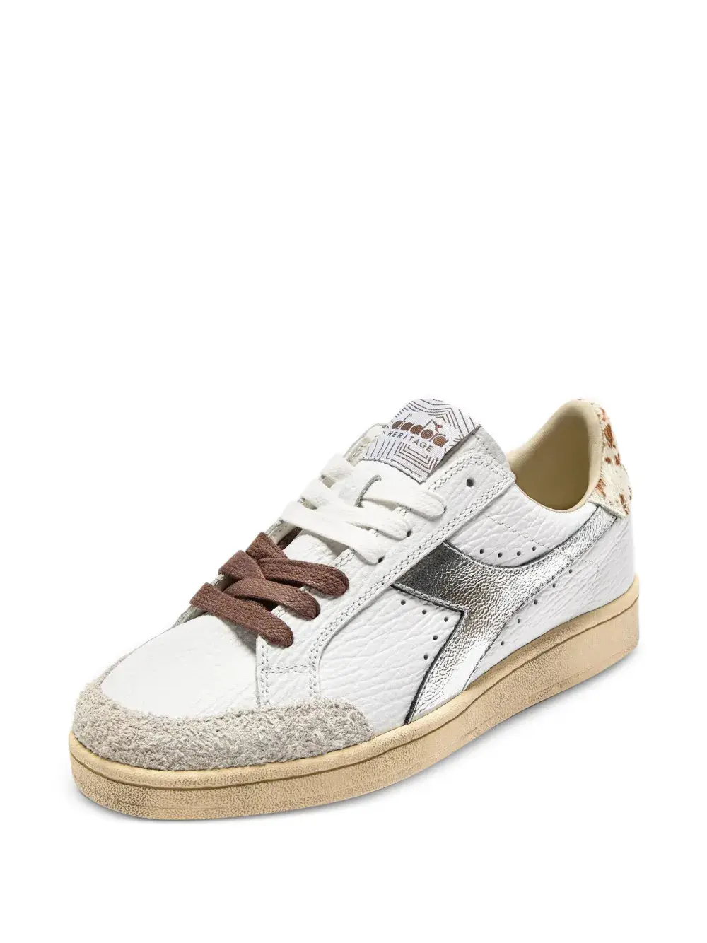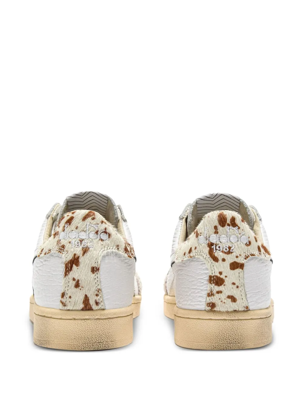 белый цвет, текстурированная отделка, детали с логотипом, задник с анималистичным принтом, шнуровка, круглый носок