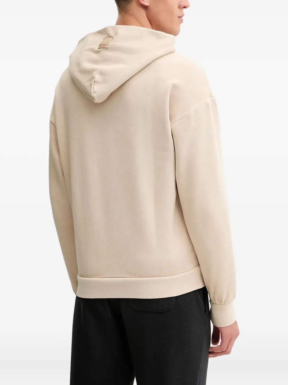 бежевый худи с логотипом, длинными рукавами и ребристыми манжетами