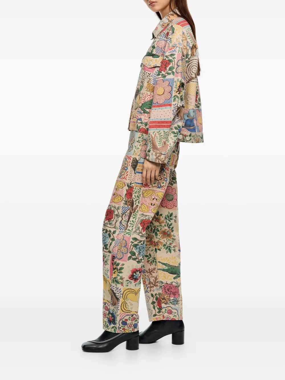 бежевый/многоцветный с цветочным принтом, застёжка на пуговицы, нагрудные карманы