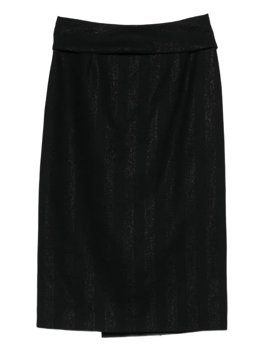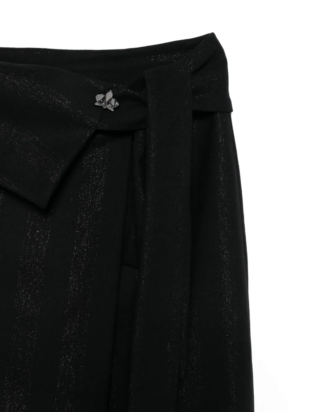 черный с вертикальным полосатым узором, кроем кимоно и асимметричным подолом