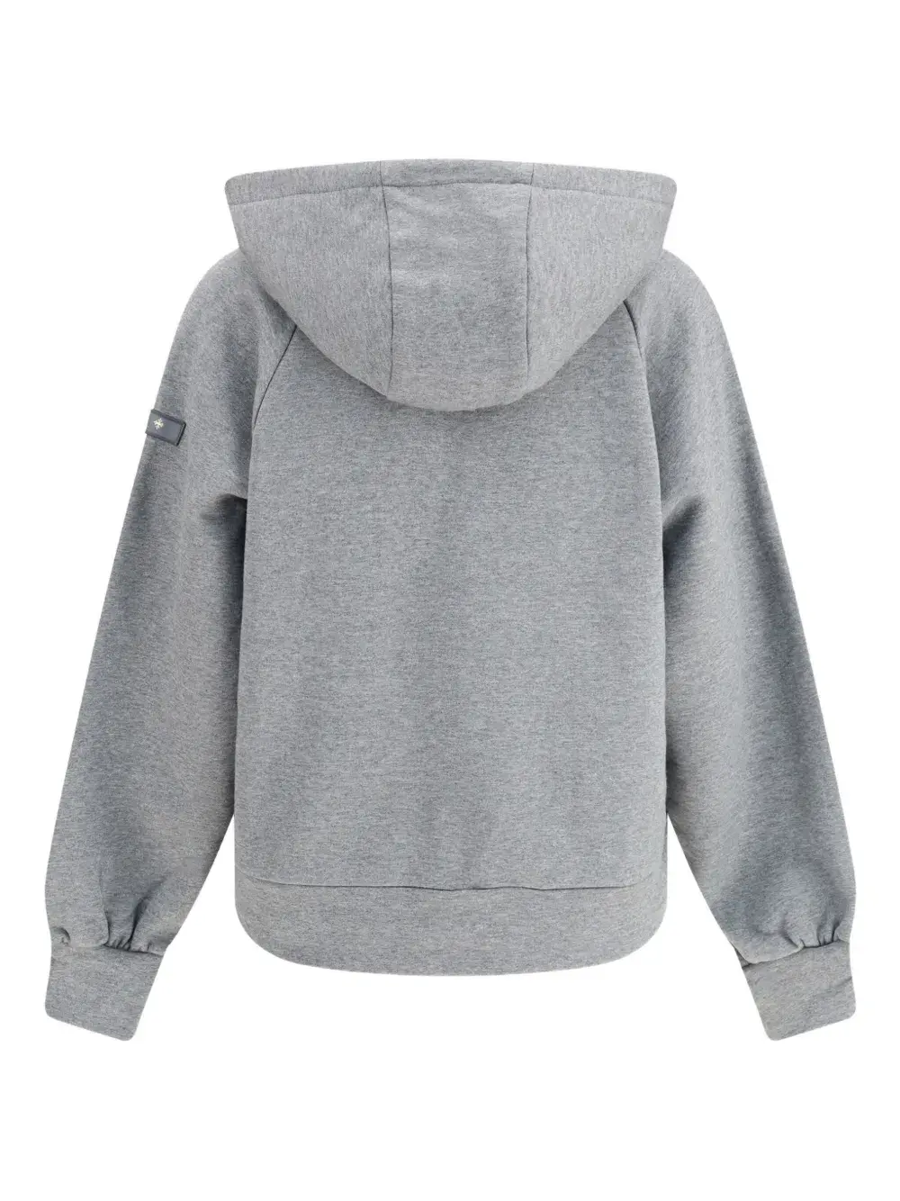серый худи с ребристыми деталями, застёжкой-молнией, длинными рукавами и нашивкой-логотипом
