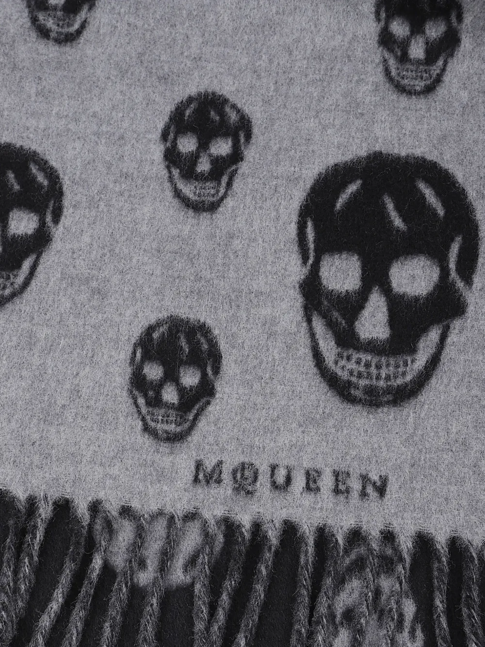 Шарф с бахромой и узором Skull Alexander Mcqueen, серый
