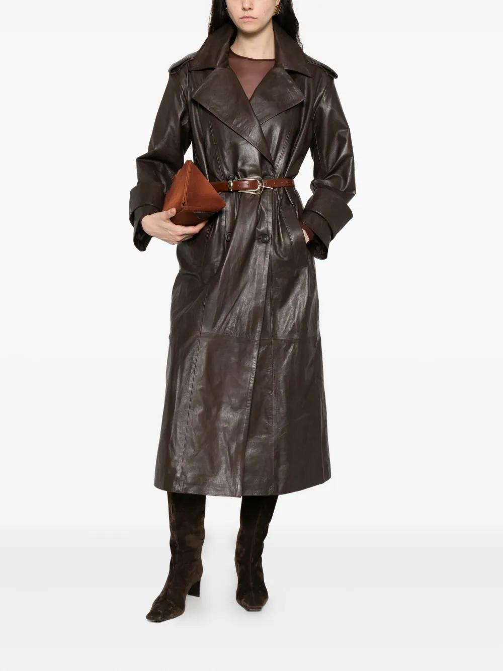 Двубортное кожаное пальто Marsem, коричневый