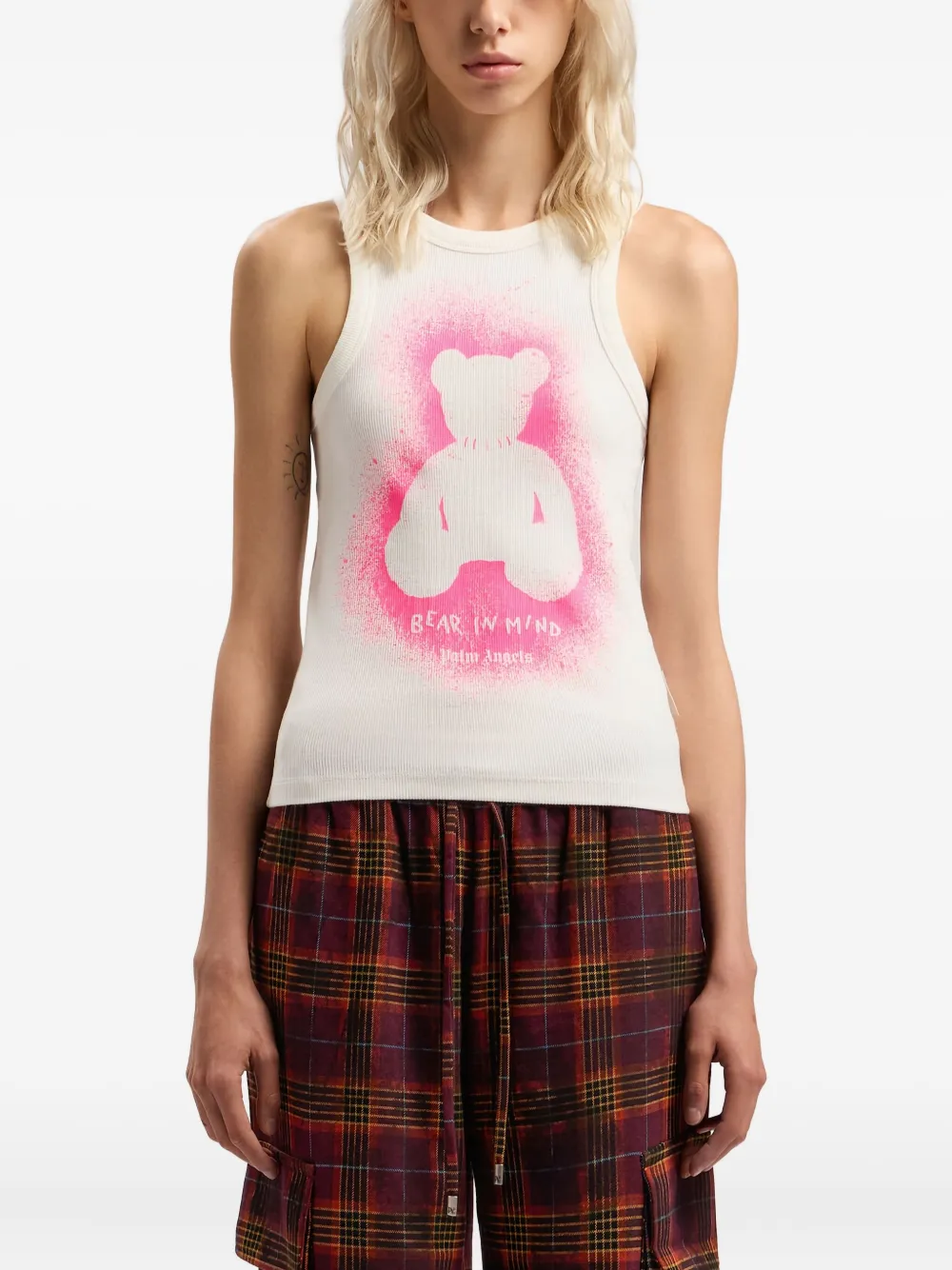 Рифленый топ-майка с медведем-спреем Palm Angels, белый