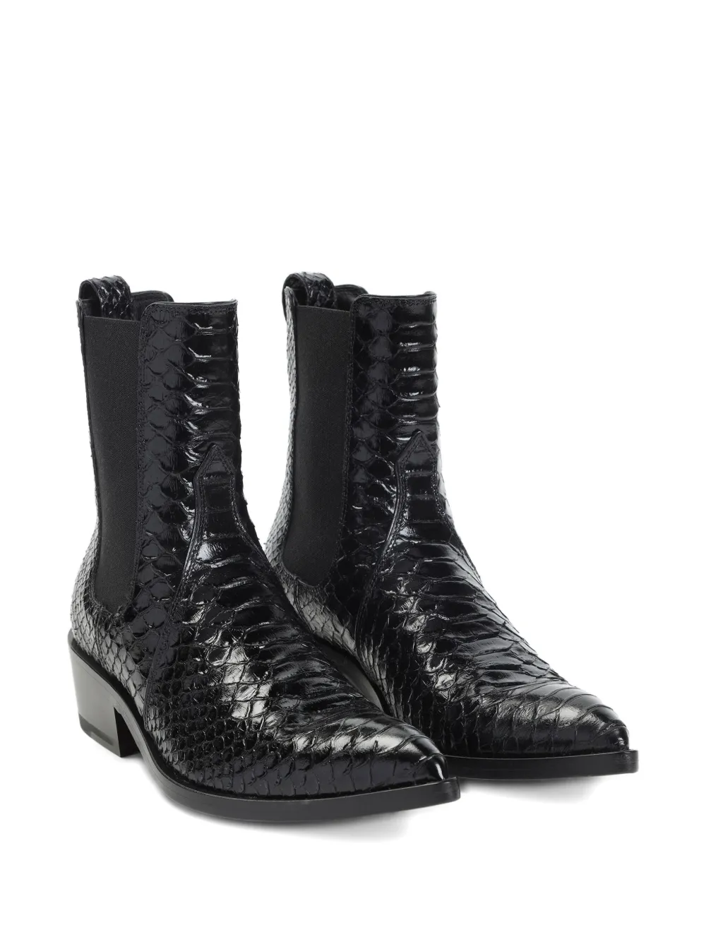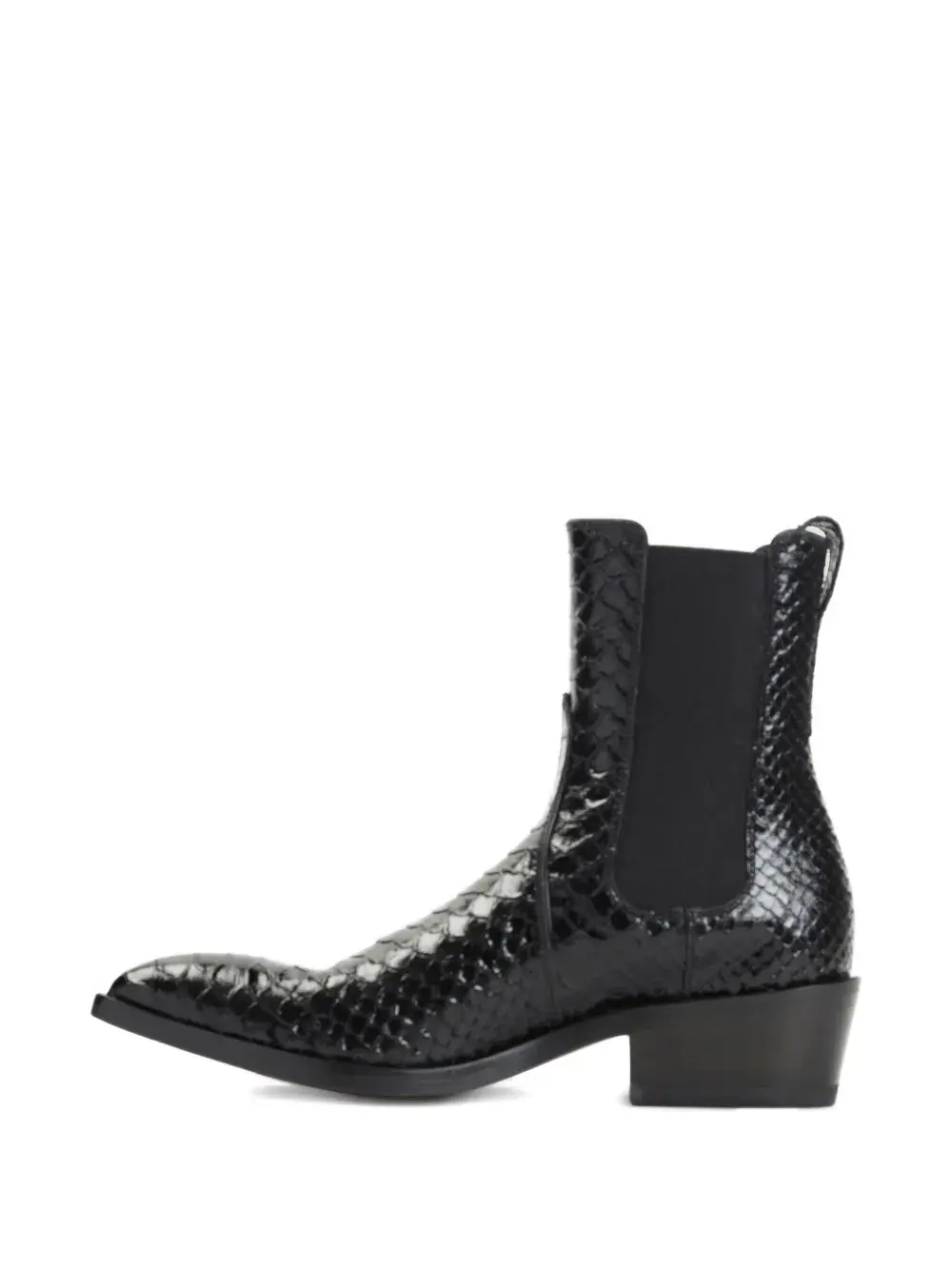 черный с текстурированной отделкой, каблук-«кирпичик», петля для надевания на вороте, эластичные боковые вставки, кожа