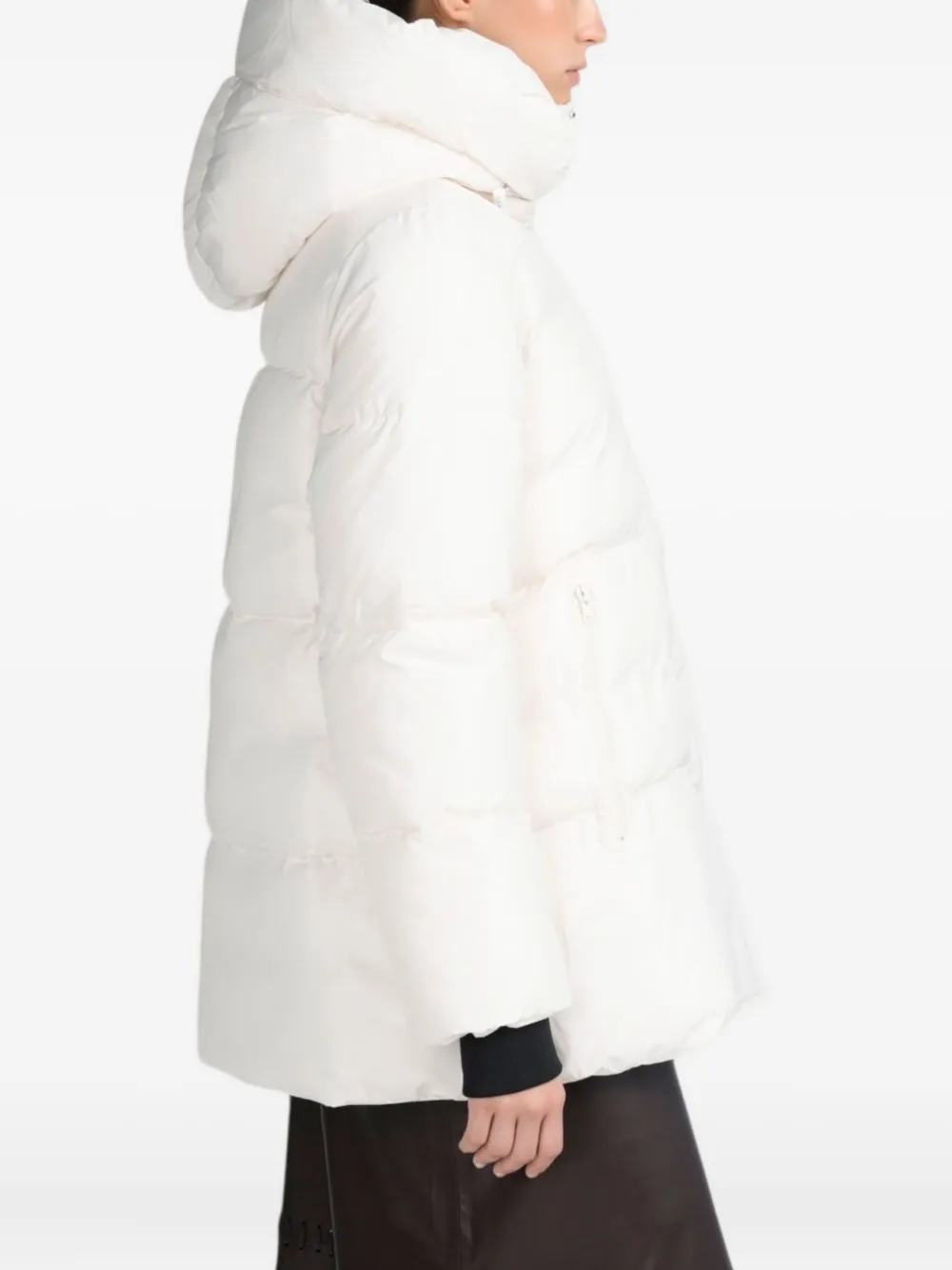 белый худи с капюшоном, застежка на молнии, стеганый дизайн, карманы на молнии, длинные рукава