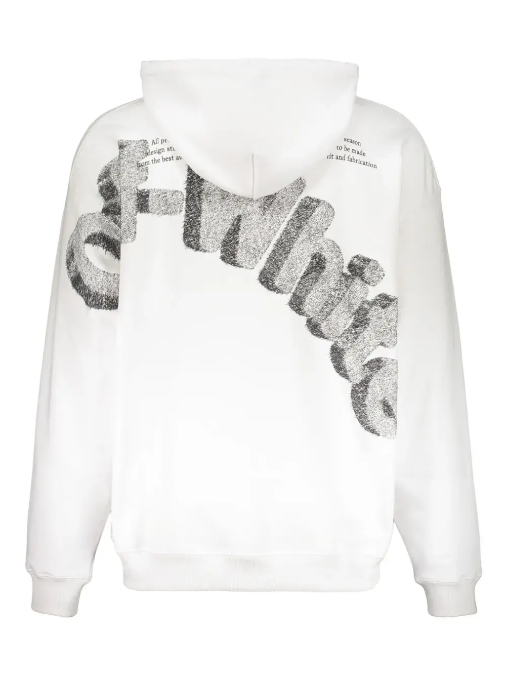 белый худи с кулиской, передним карманом-кенгуру, логотипом в виде надписи, ребристыми манжетами и ребристым низом