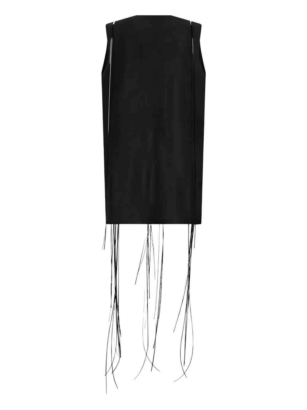 черный топ без рукавов с круглым вырезом, украшенный пайетками