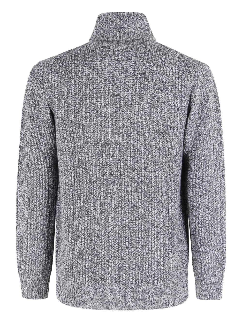 серый вязаный кардиган с застежкой-молнией, высоким воротником, длинными рукавами и ребристым низом