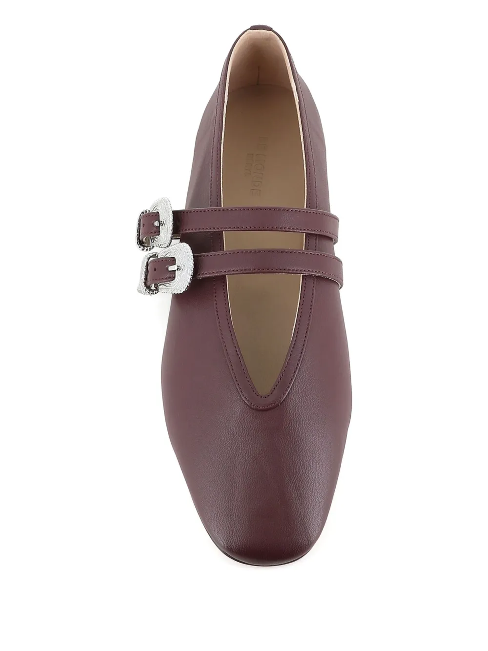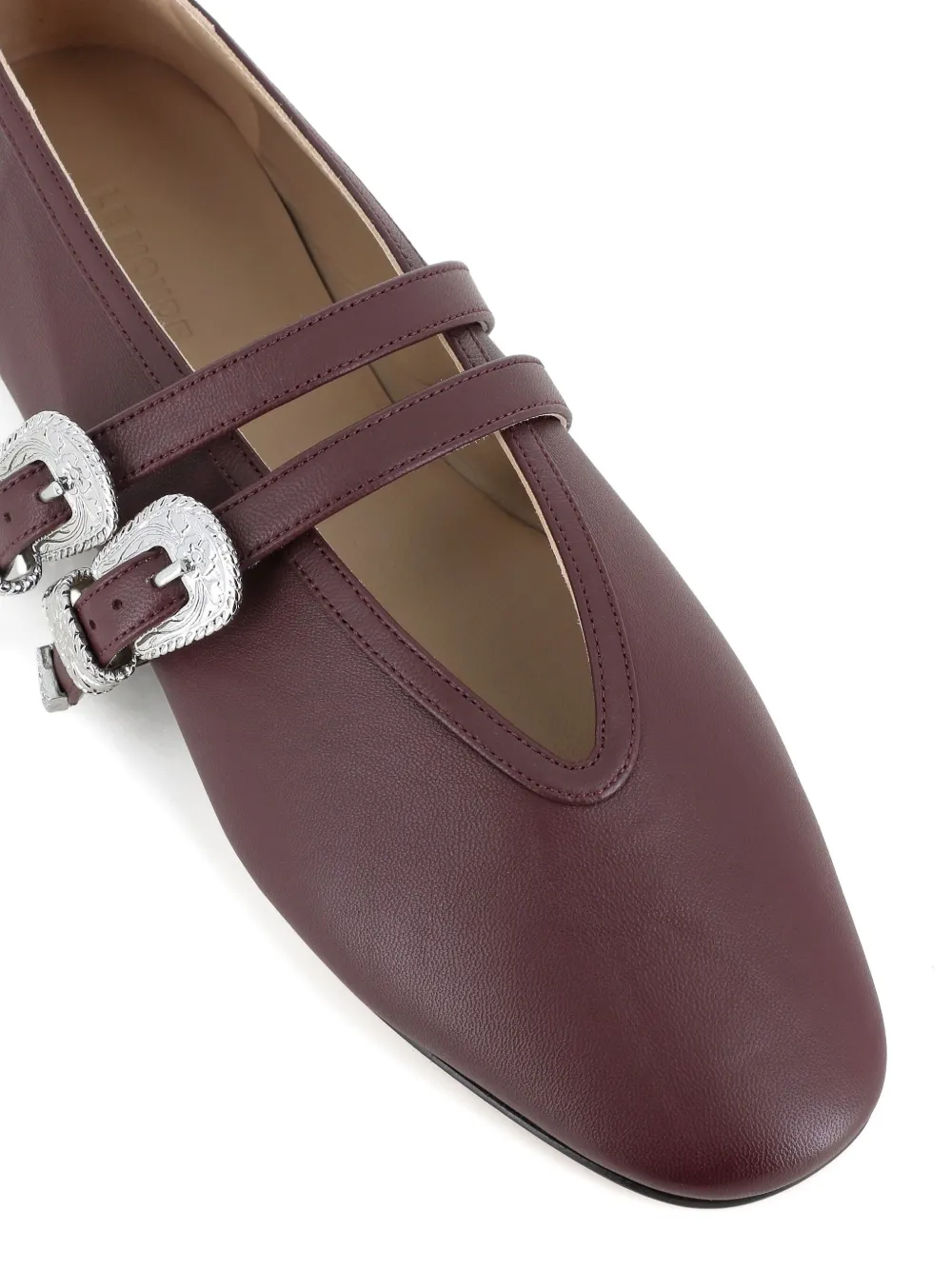 коричневый с двумя ремешками, серебристая фурнитура, квадратный носок, плоская подошва, кожа
